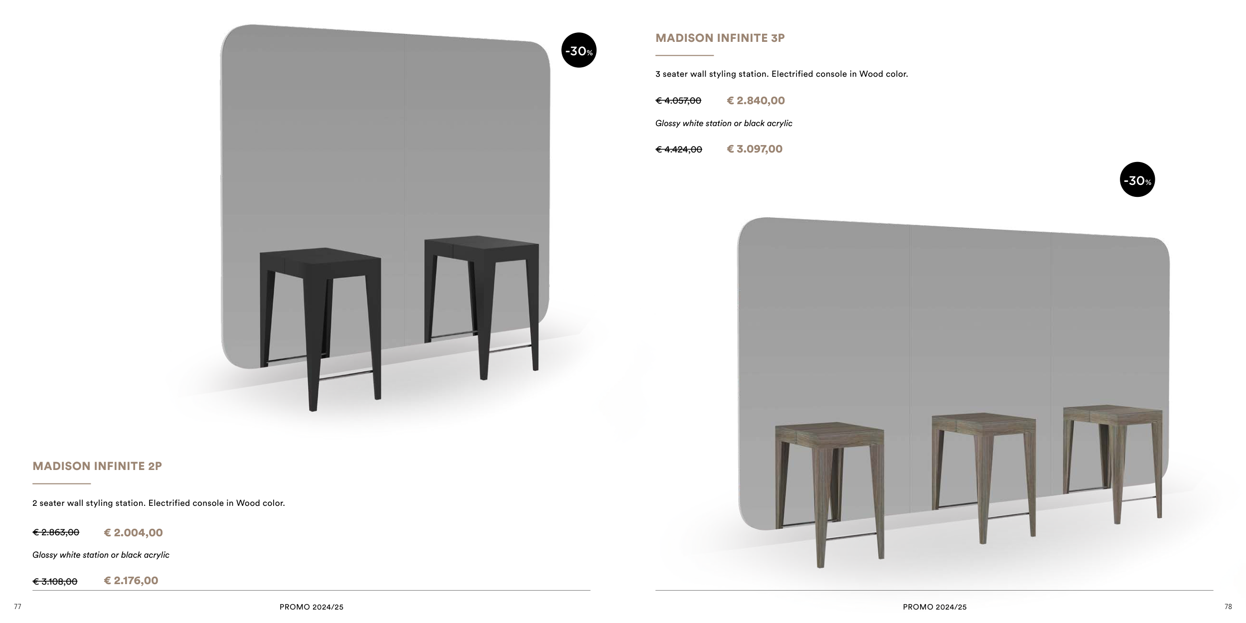 2 seater wall styling station. Electrified console in Wood color.