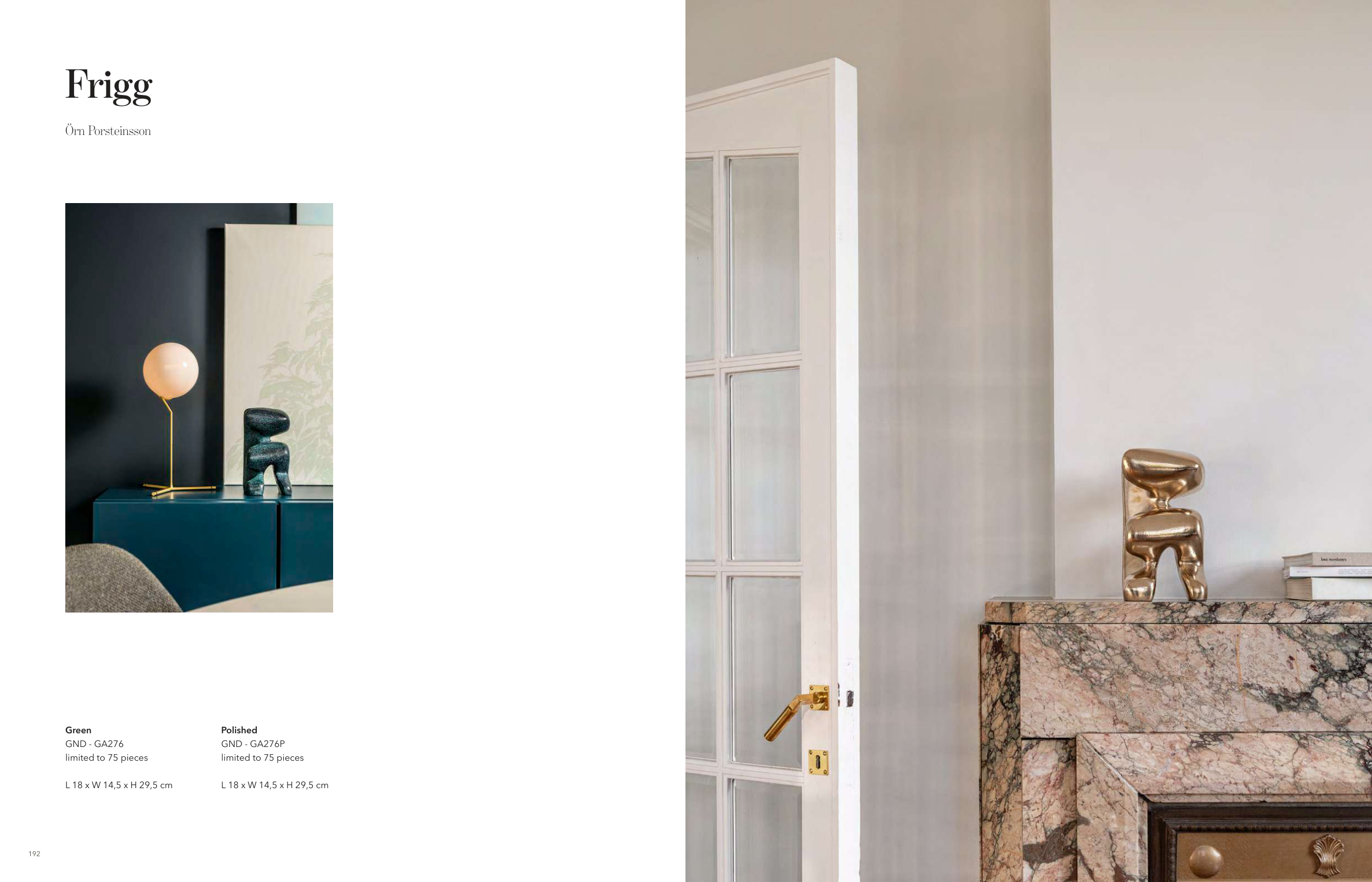 192 193 Frigg Örn Porsteinsson Green GND - GA276 limited to 75 pieces L 18 x W 14,5 x H 29,5 cm Polished GND - GA276P limited to 75 pieces L 18 x W 14,5 x H 29,5 cm