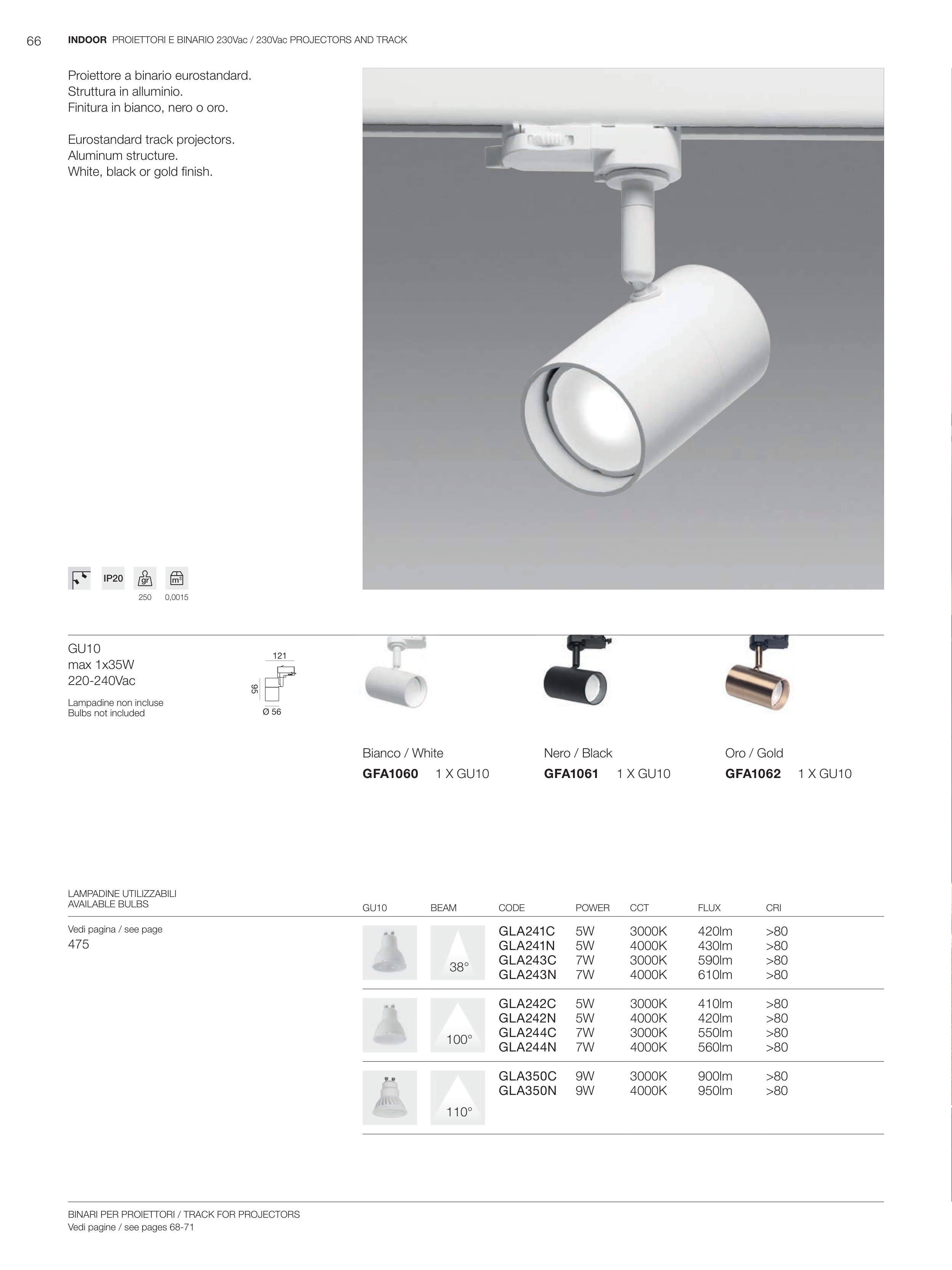 INDOOR PROIETTORI E BINARIO 230Vac / 230Vac PROJECTORS AND TRACK