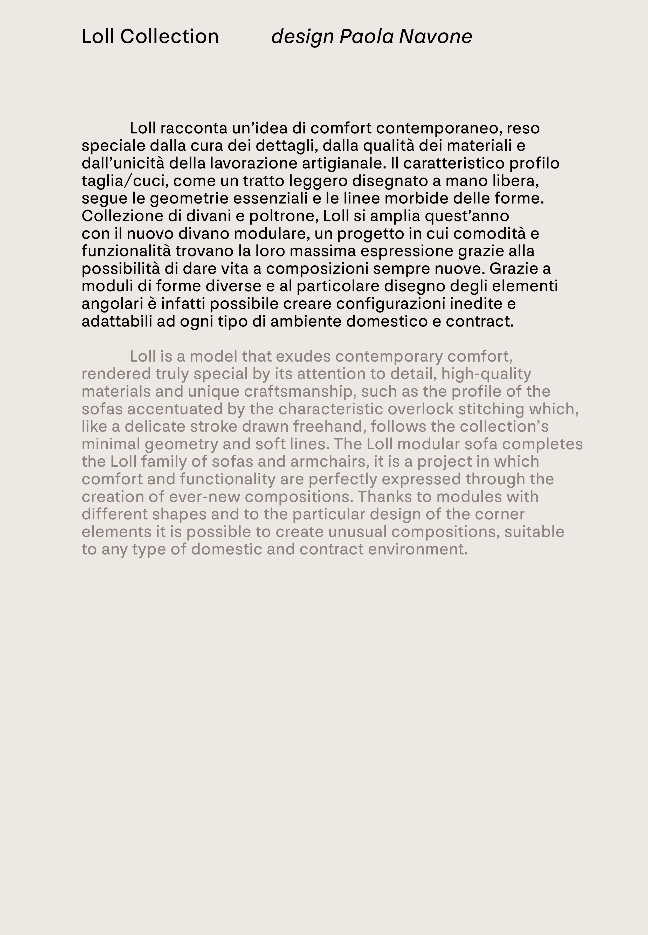 Loll racconta un’idea di comfort contemporaneo, reso