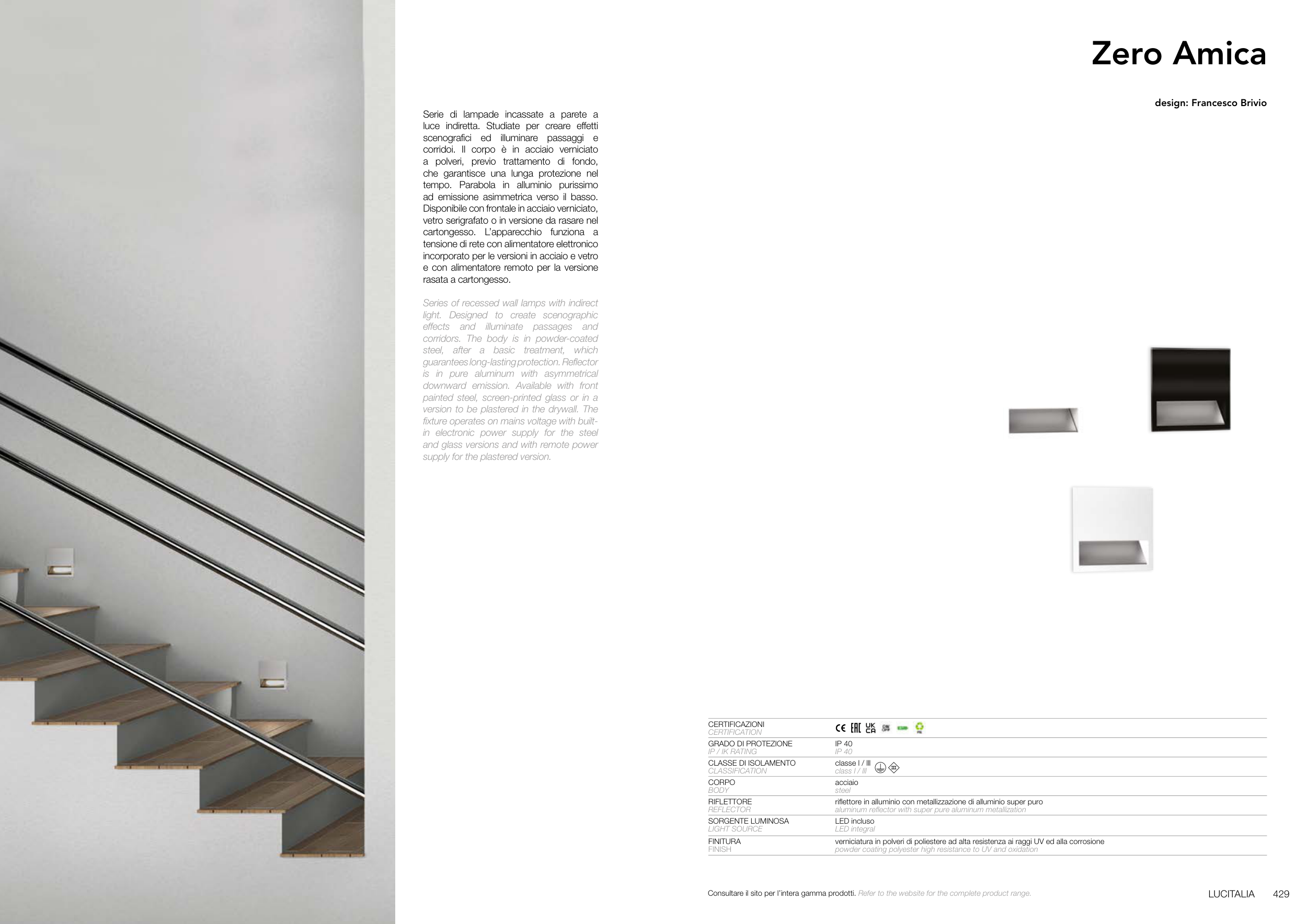 Consultare il sito per l’intera gamma prodotti. Refer to the website for the complete product range.
