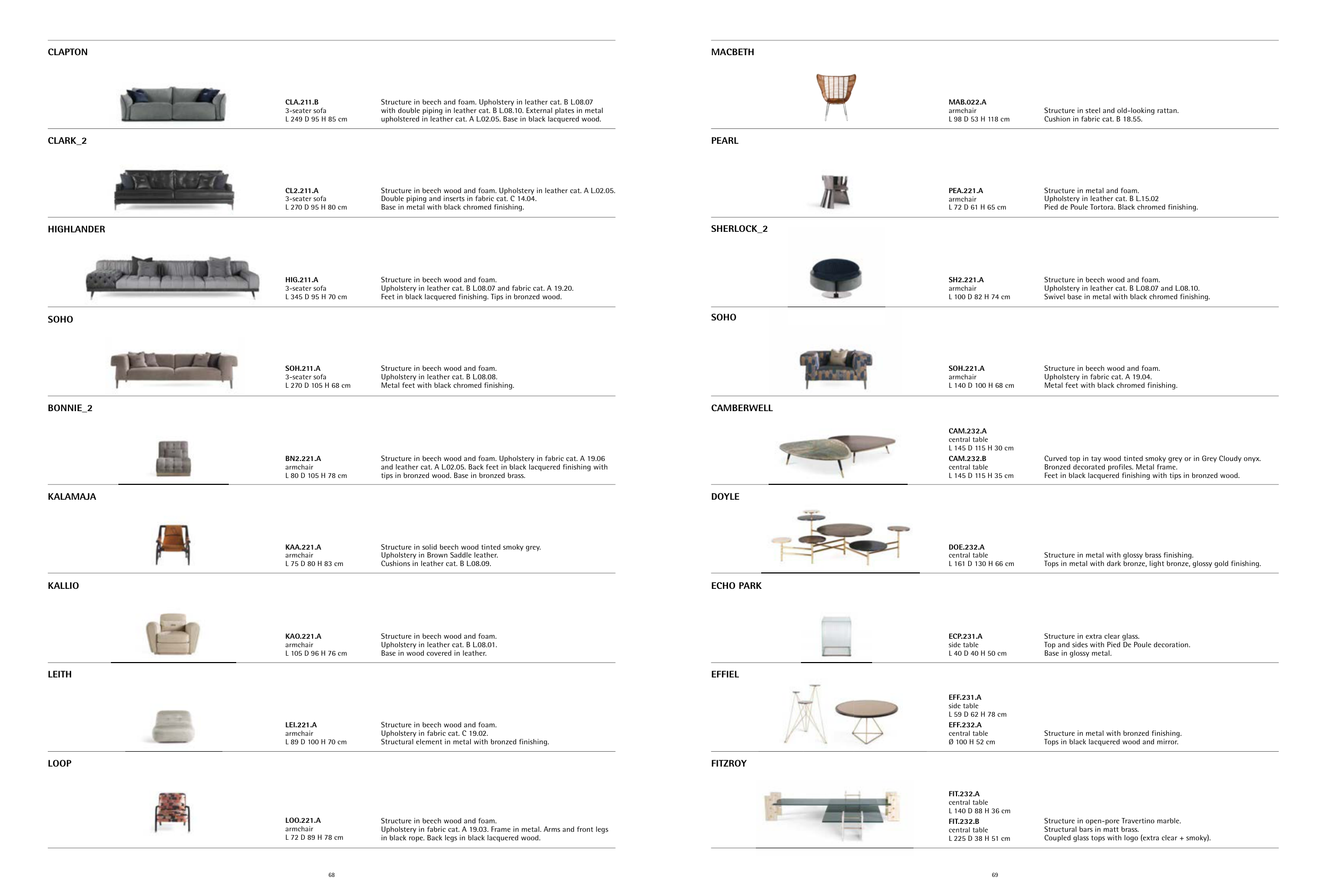 Structure in beech and foam. Upholstery in leather cat. B L.08.07