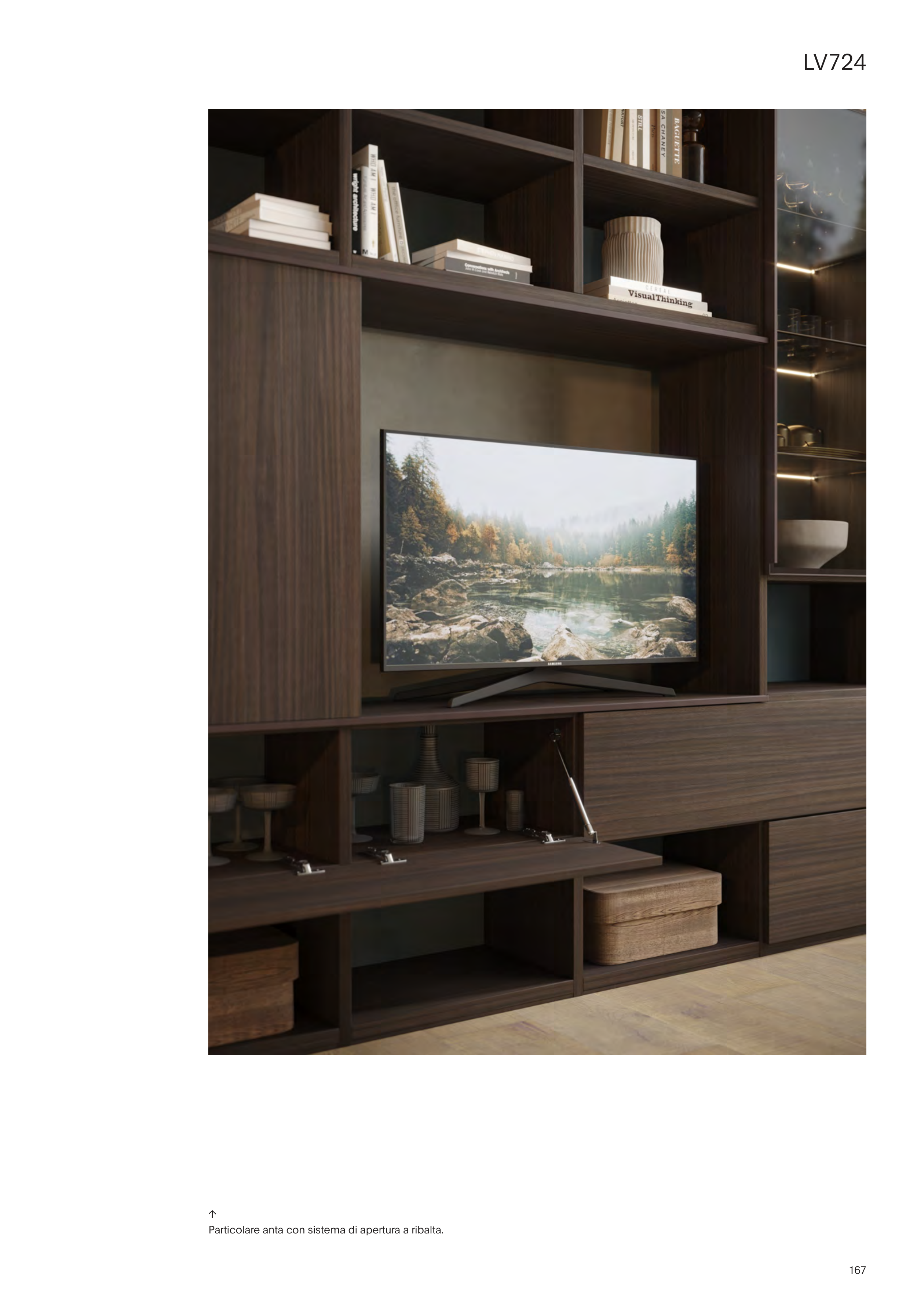 Particolare anta con sistema di apertura a ribalta.