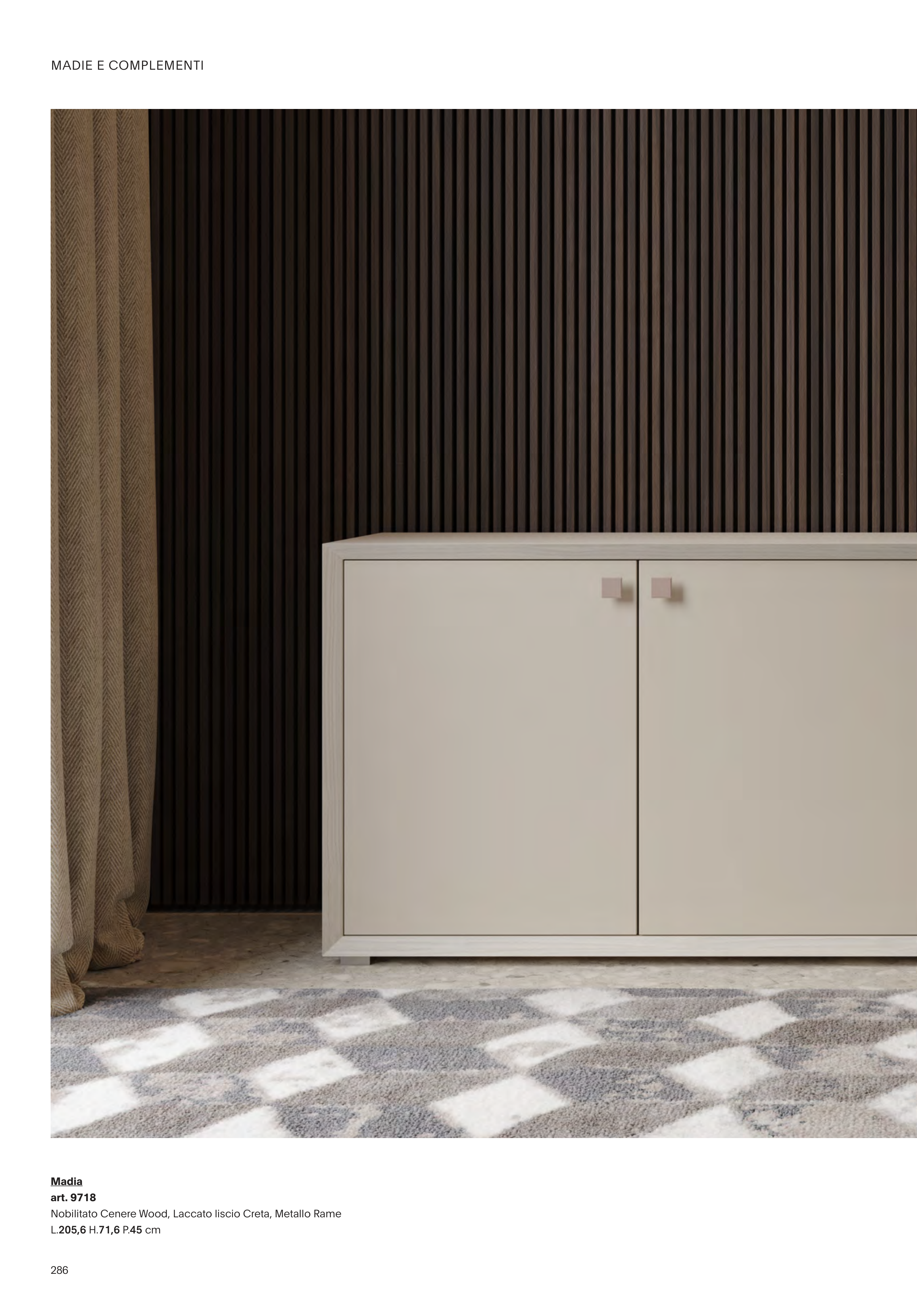 Nobilitato Cenere Wood, Laccato liscio Creta, Metallo Rame