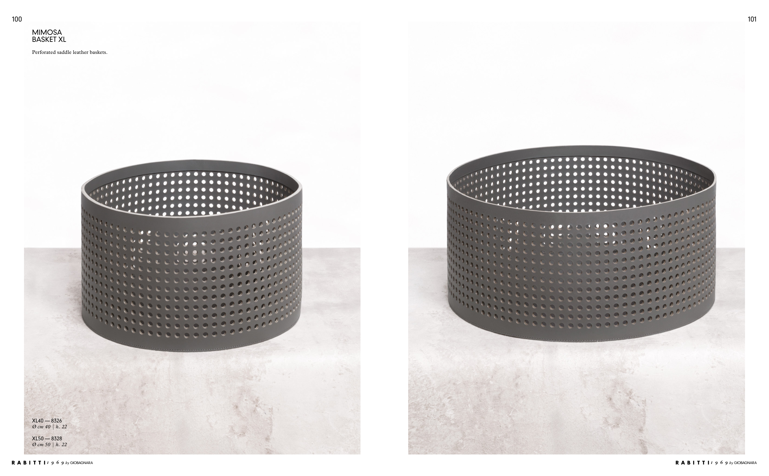 Perforated saddle leather baskets.