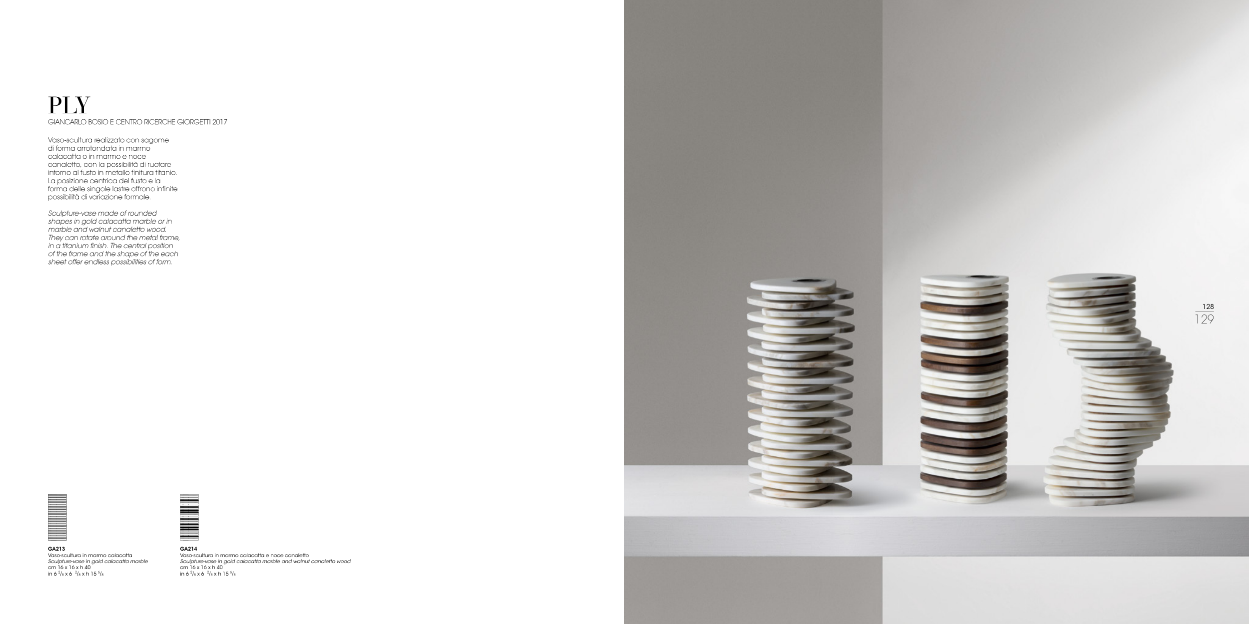 Vaso-scultura in marmo calacatta e noce canaletto
