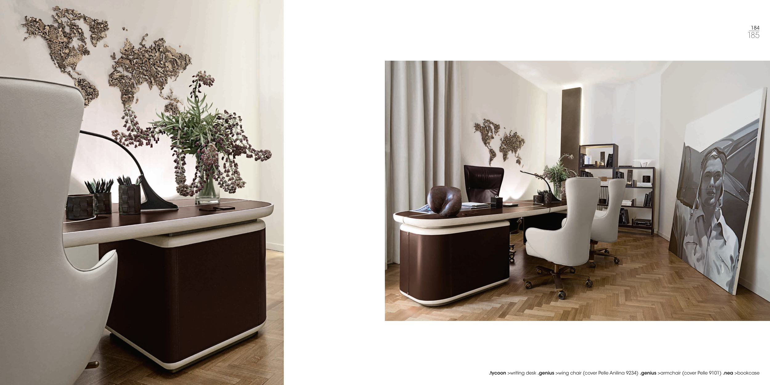 .tycoon >writing desk .genius >wing chair (cover Pelle Anilina 9234) .genius >armchair (cover Pelle 9101) .nea >bookcase