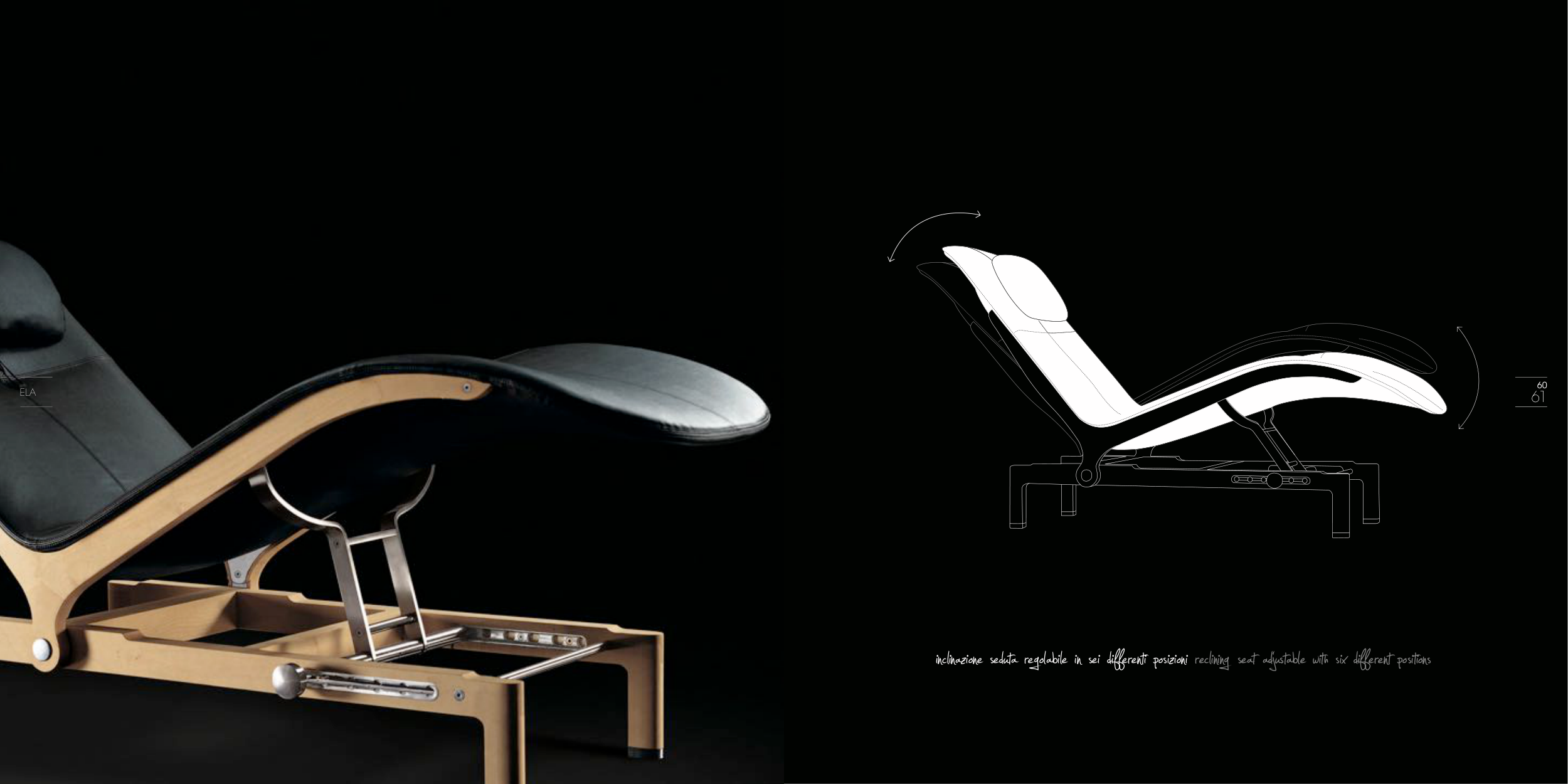 inclinazione seduta regolabile in sei differenti posizioni reclining seat adjustable with six different positions