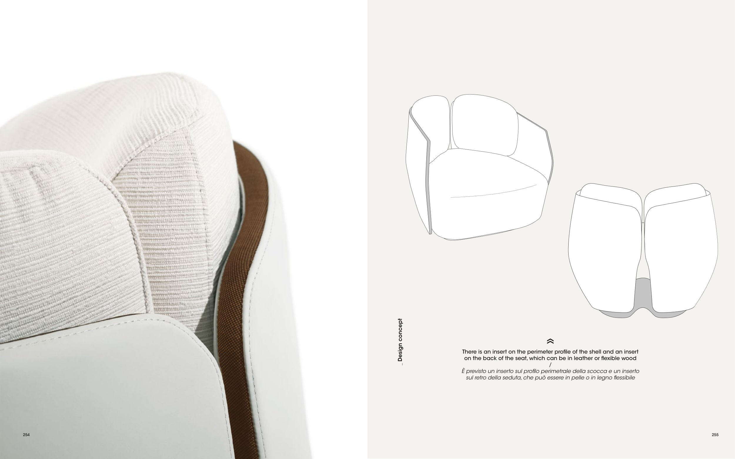 on the back of the seat, which can be in leather or flexible wood