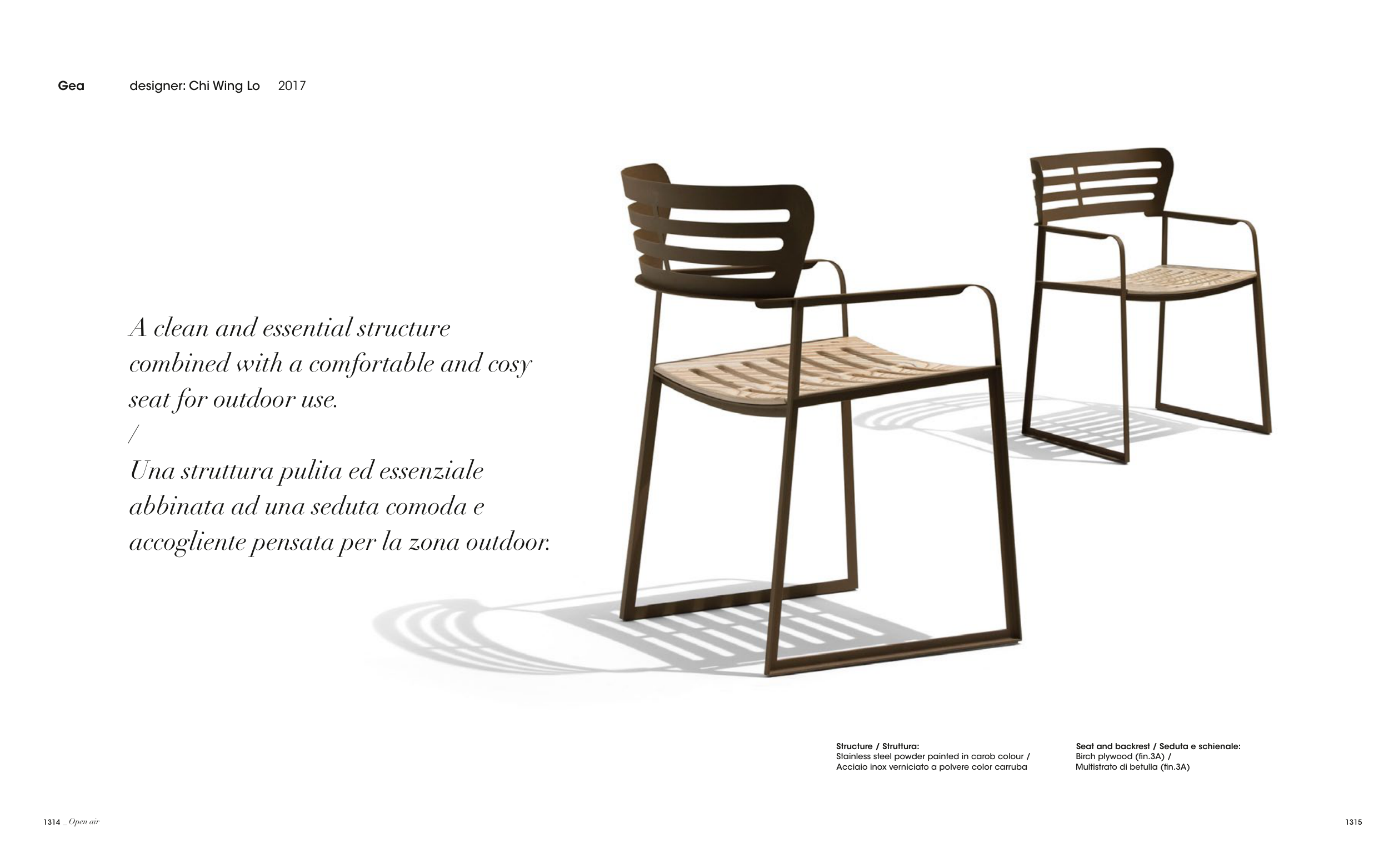 Stainless steel powder painted in carob colour / Birch plywood (fin.3A) /