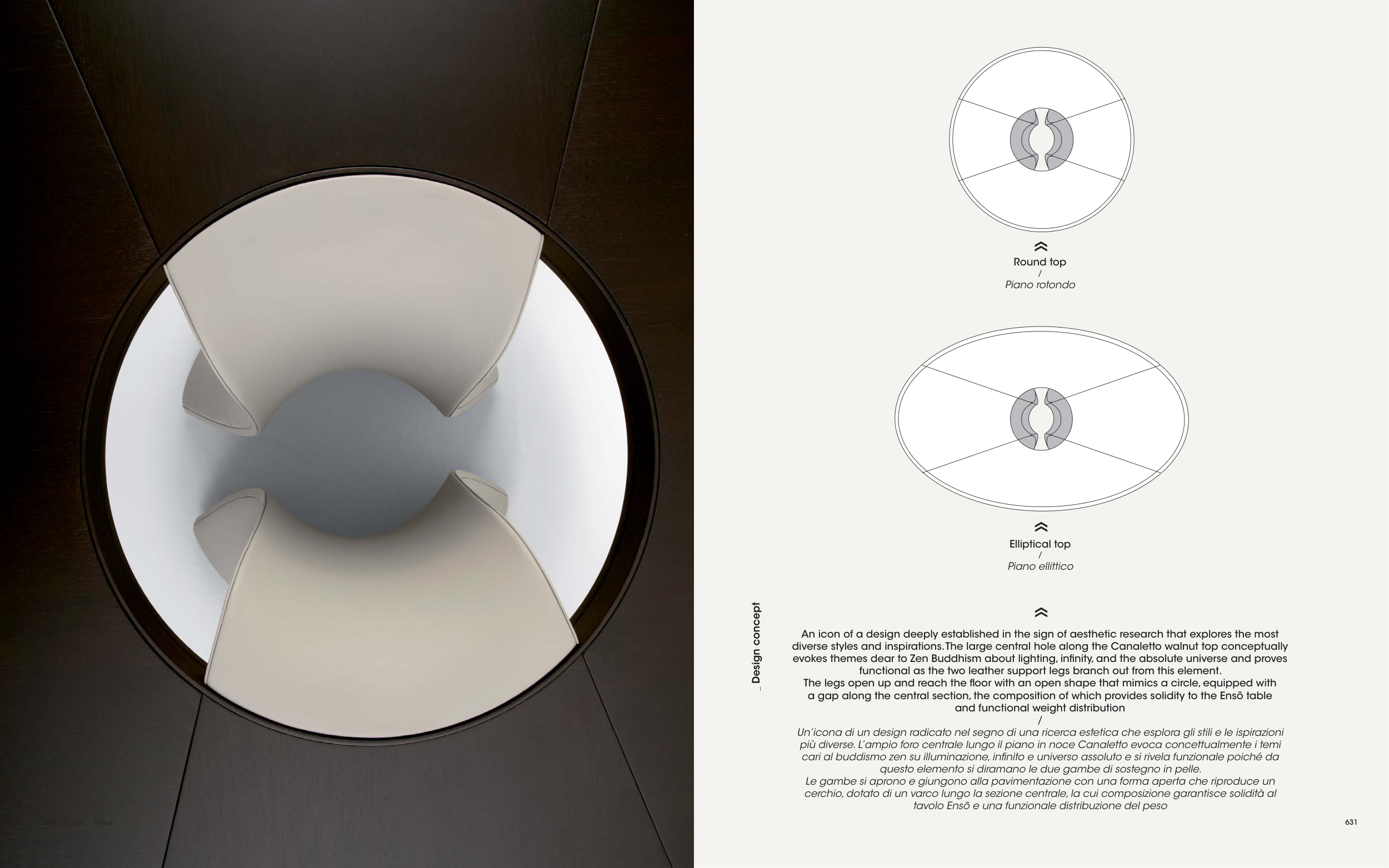 diverse styles and inspirations. The large central hole along the Canaletto walnut top conceptually