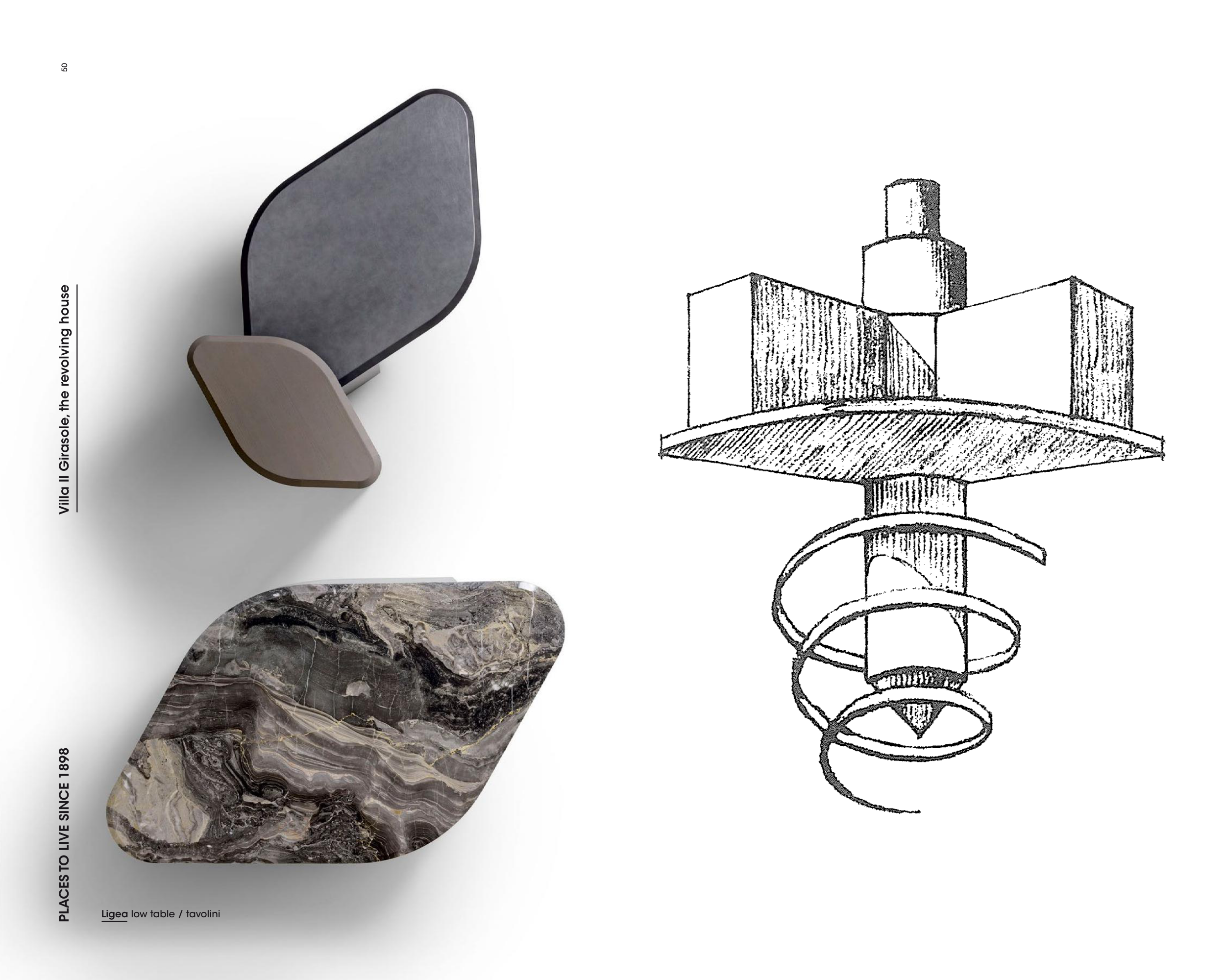 50 51 PLACES TO LIVE SINCE 1898 Villa Il Girasole, the revolving house PLACES TO LIVE SINCE 1898 Villa Il Girasole, the revolving house Ligea low table / tavolini
