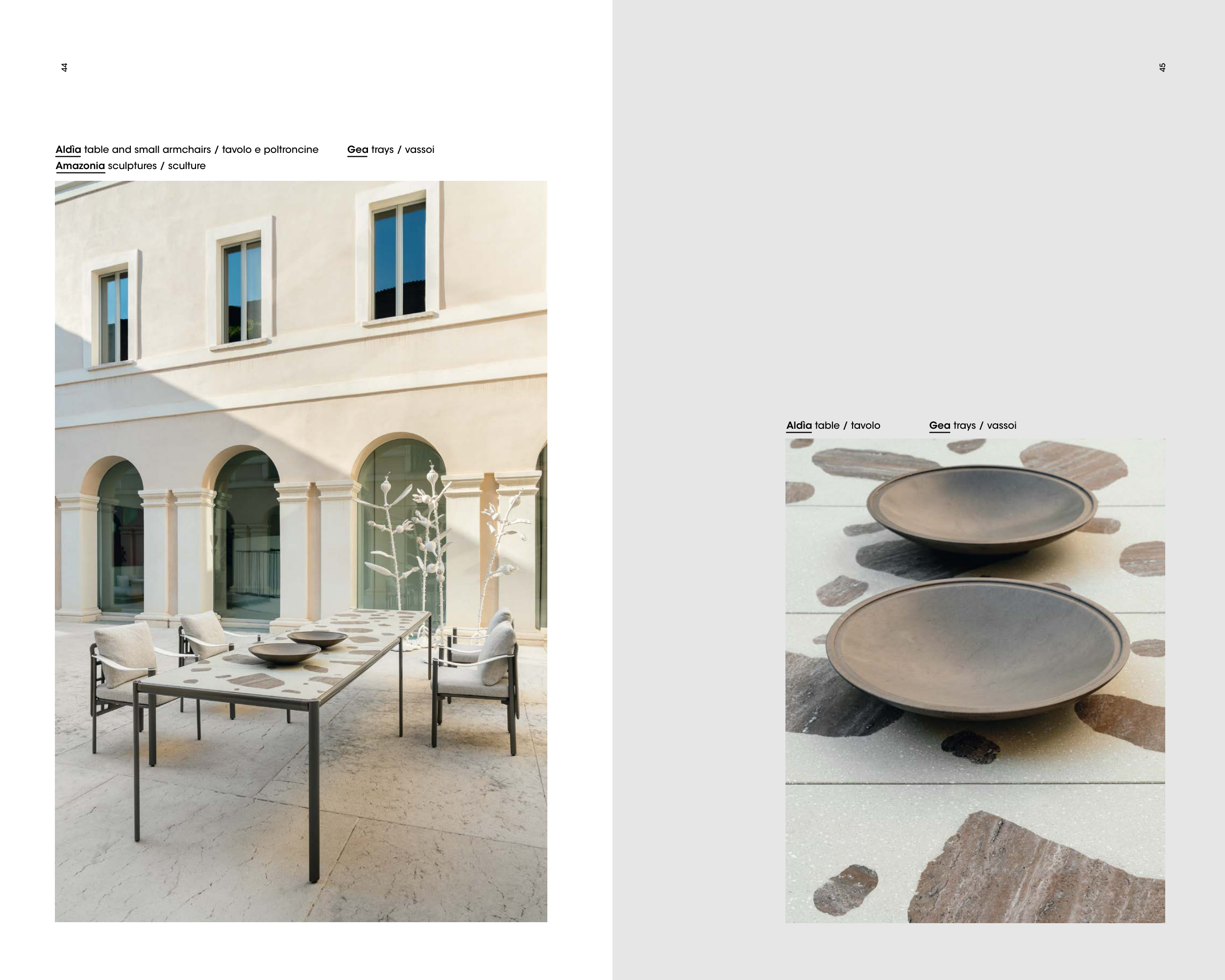 Aldìa table and small armchairs / tavolo e poltroncine Gea trays / vassoi