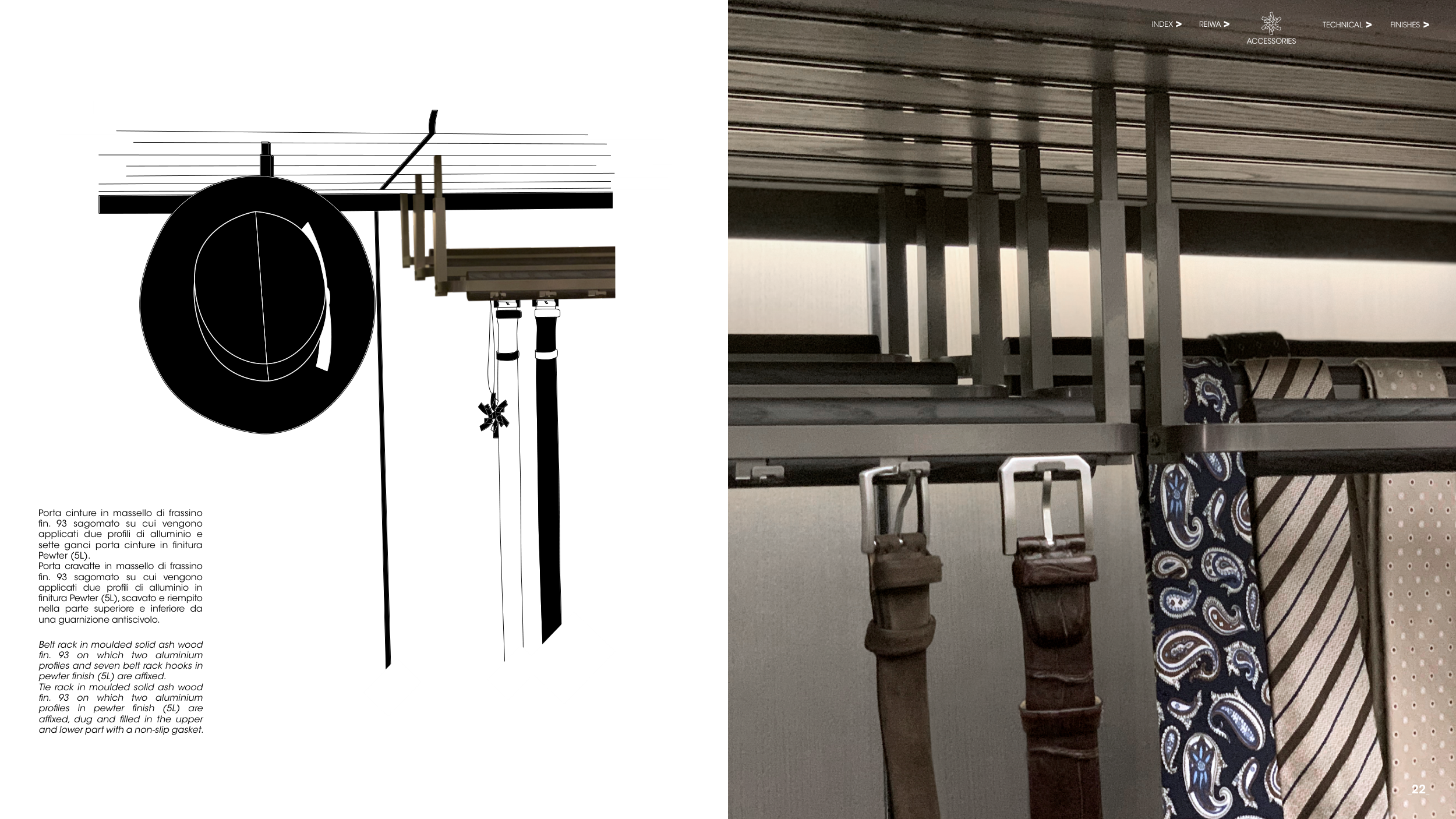 Belt rack in moulded solid ash wood