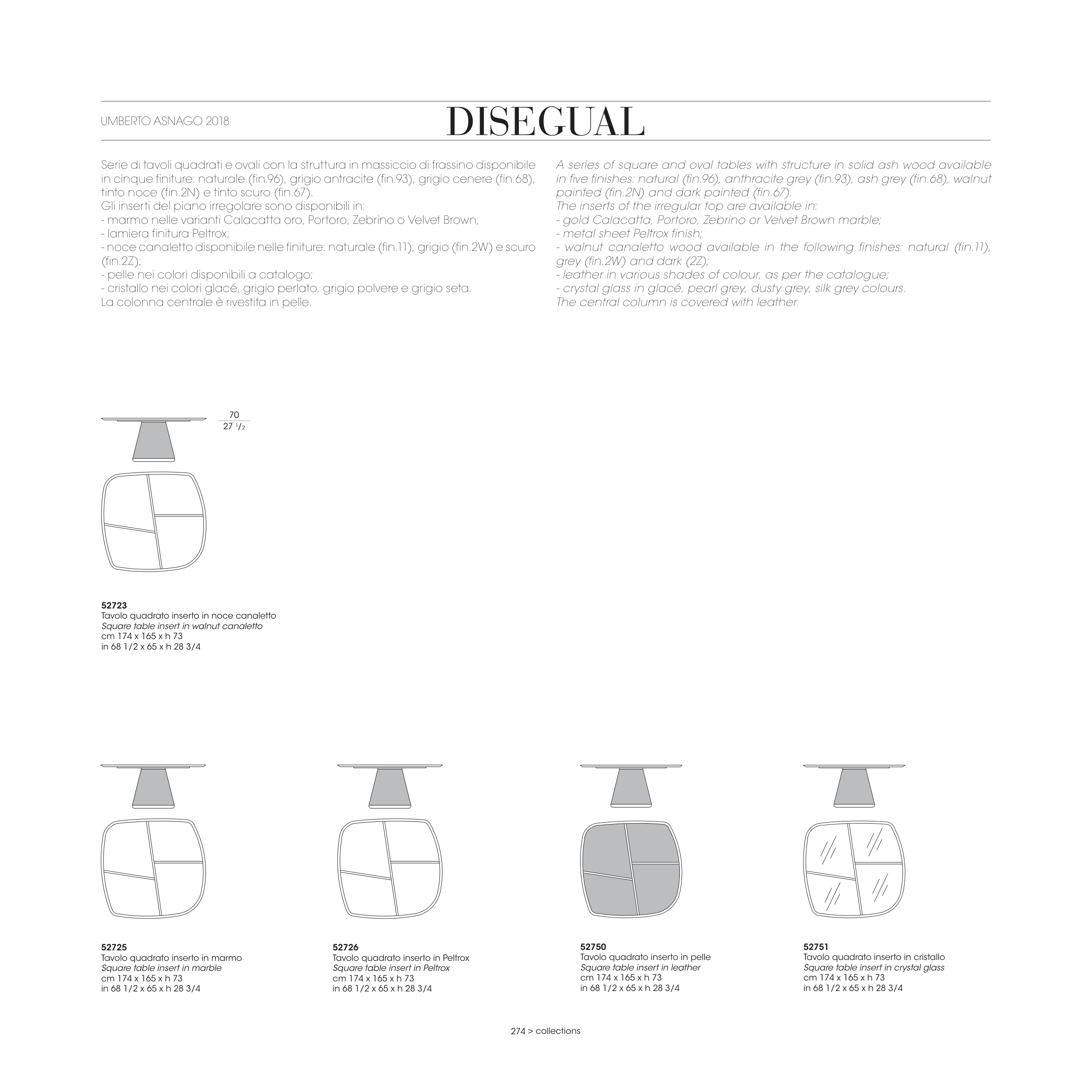 The inserts of the irregular top are available in: