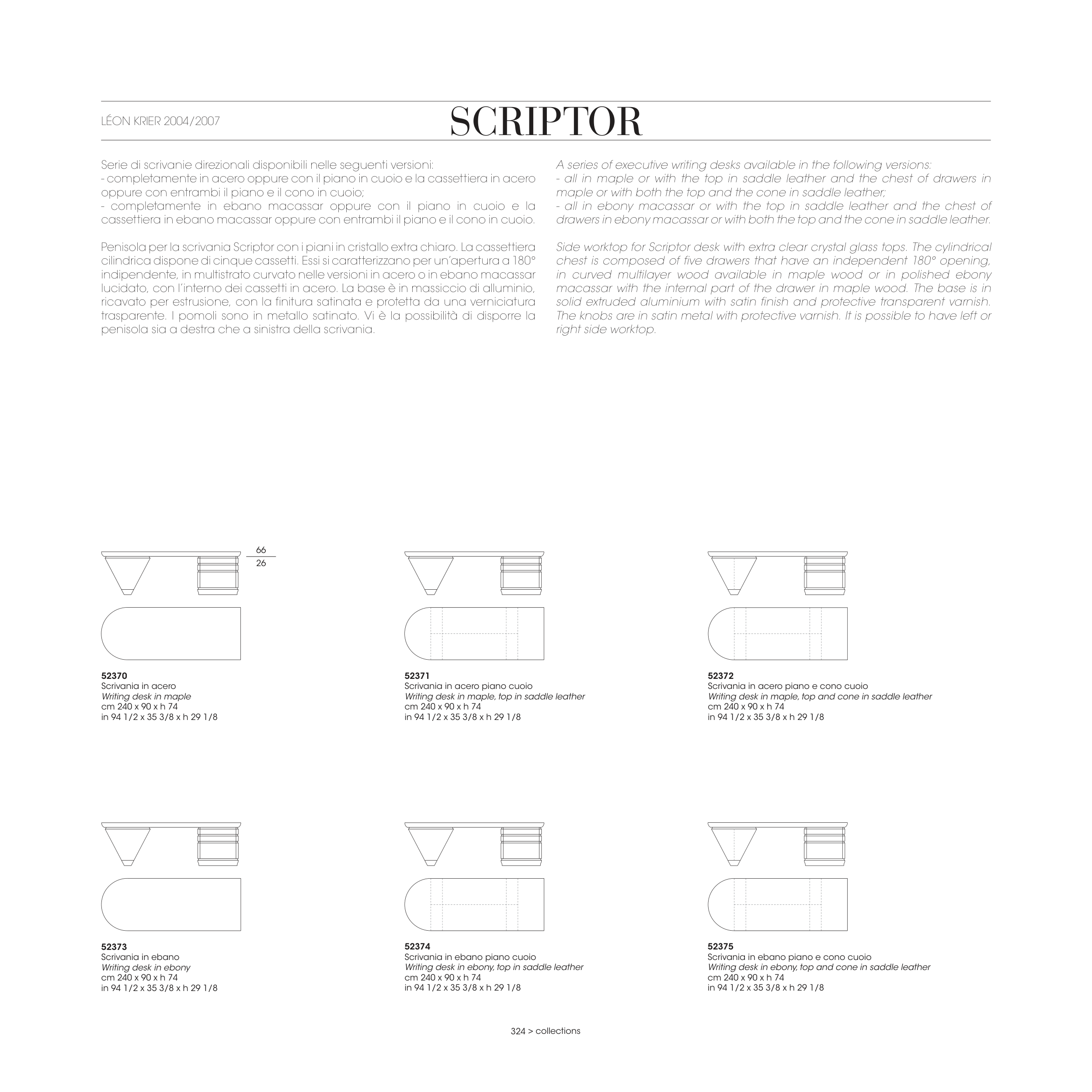 A series of executive writing desks available in the following versions: