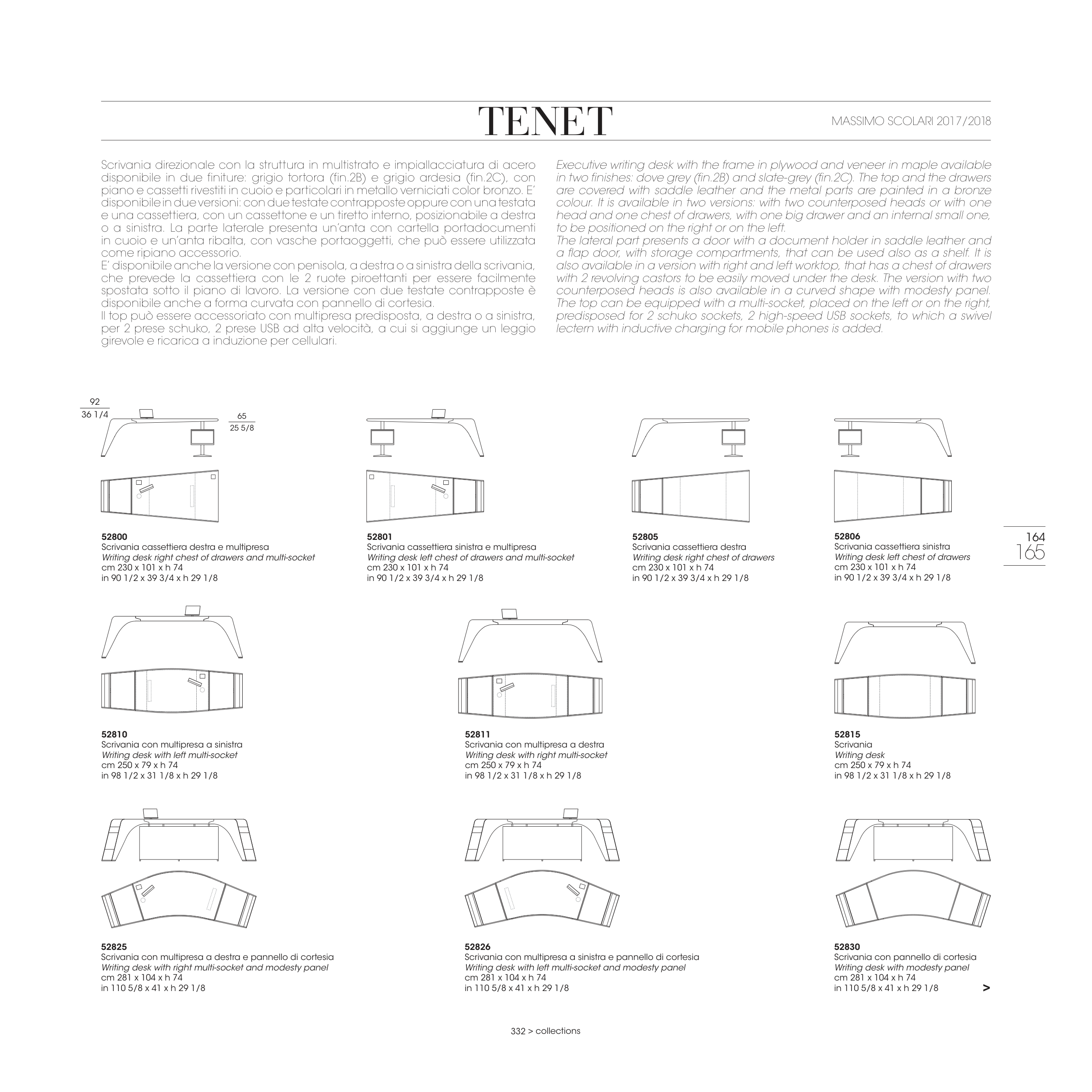 in two finishes: dove grey (fin.2B) and slate-grey (fin.2C). The top and the drawers