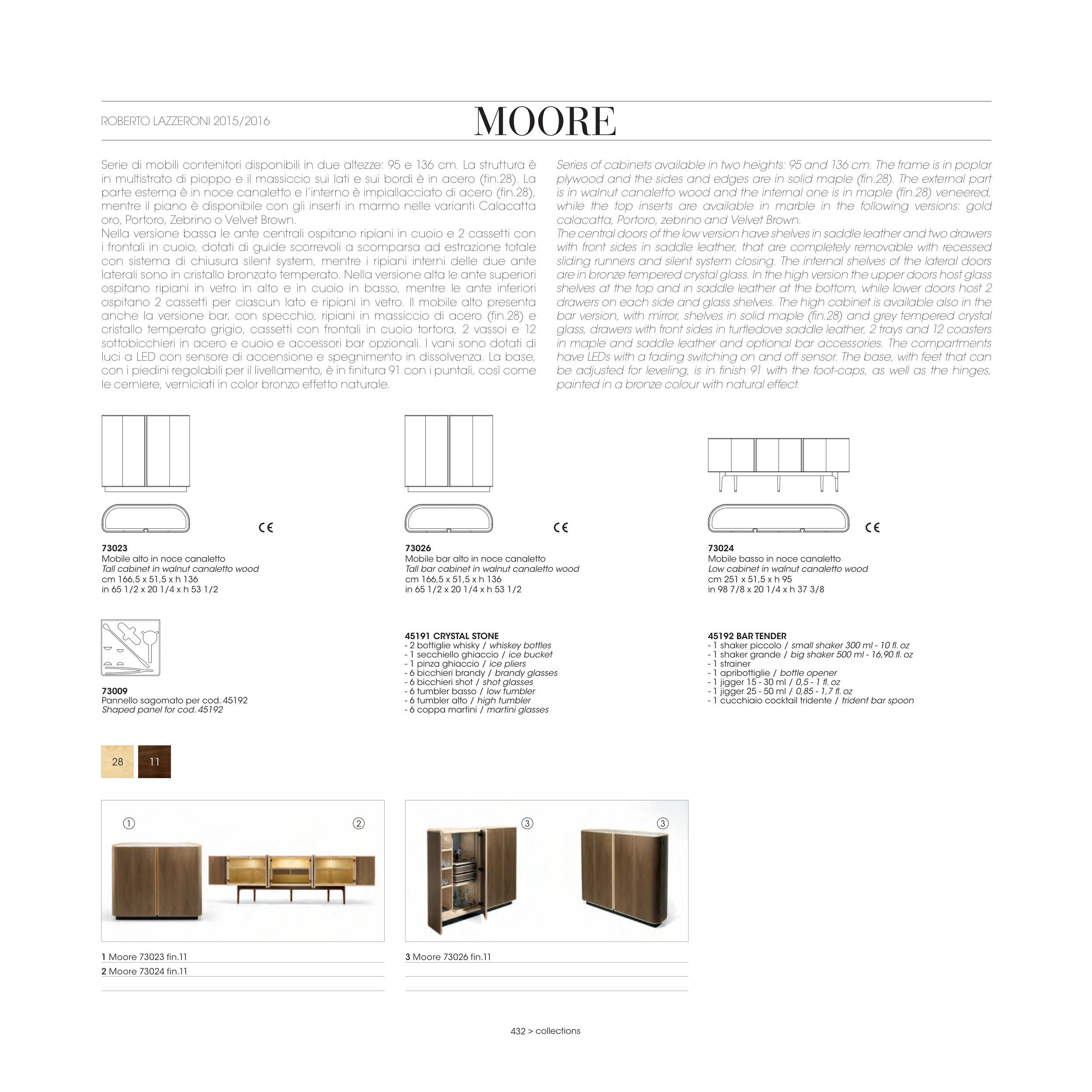 are in bronze tempered crystal glass. In the high version the upper doors host glass