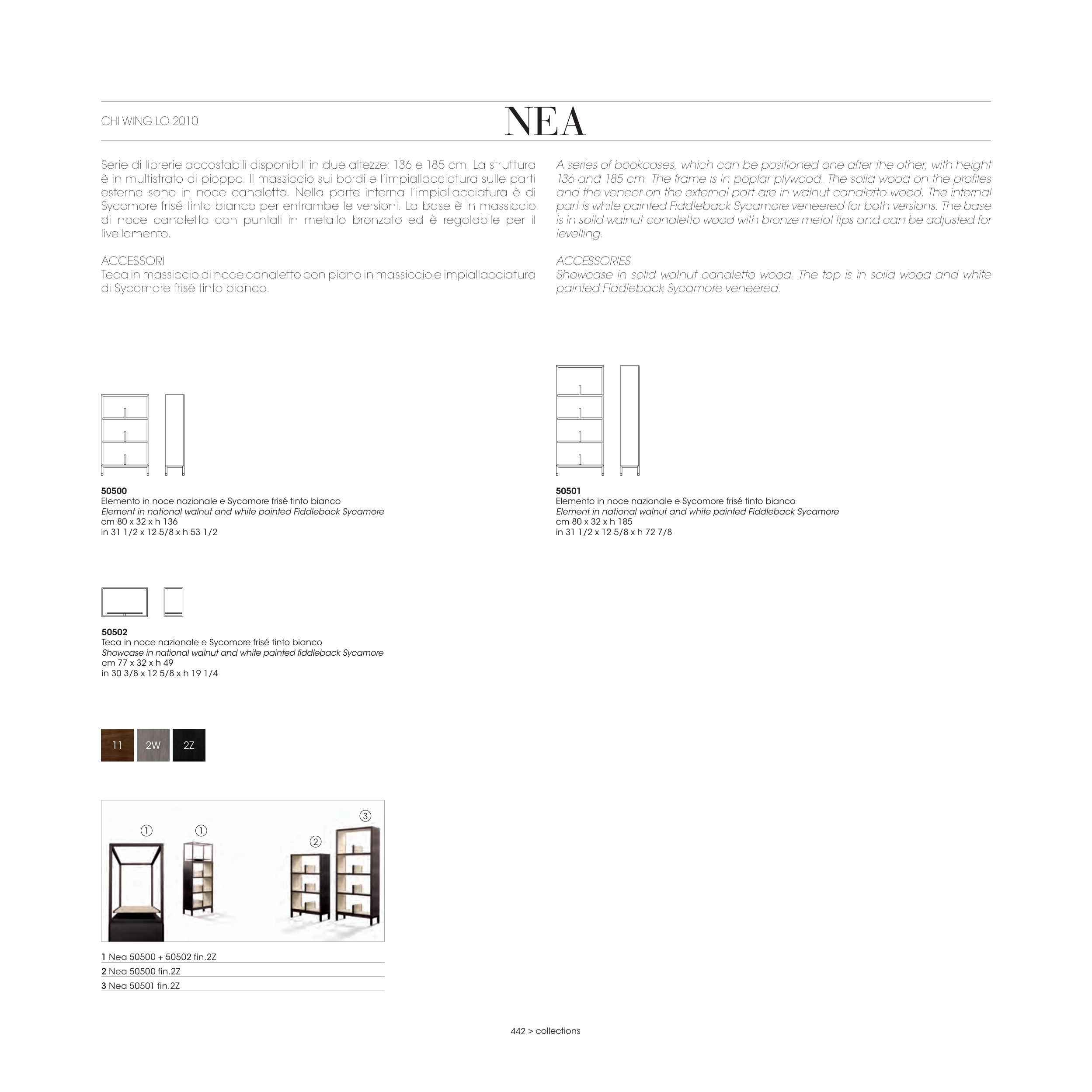 Teca in noce nazionale e Sycomore frisé tinto bianco