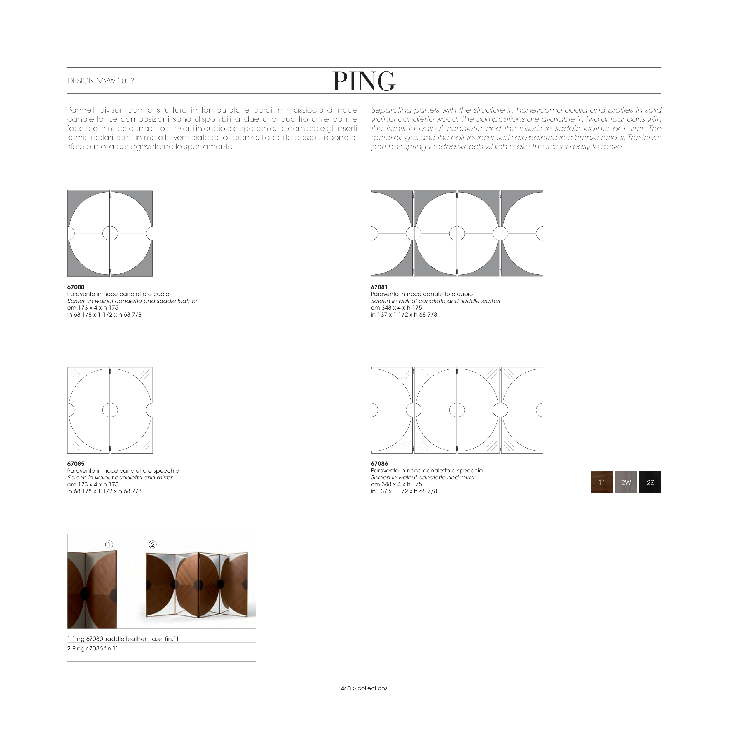 the fronts in walnut canaletto and the inserts in saddle leather or mirror. The