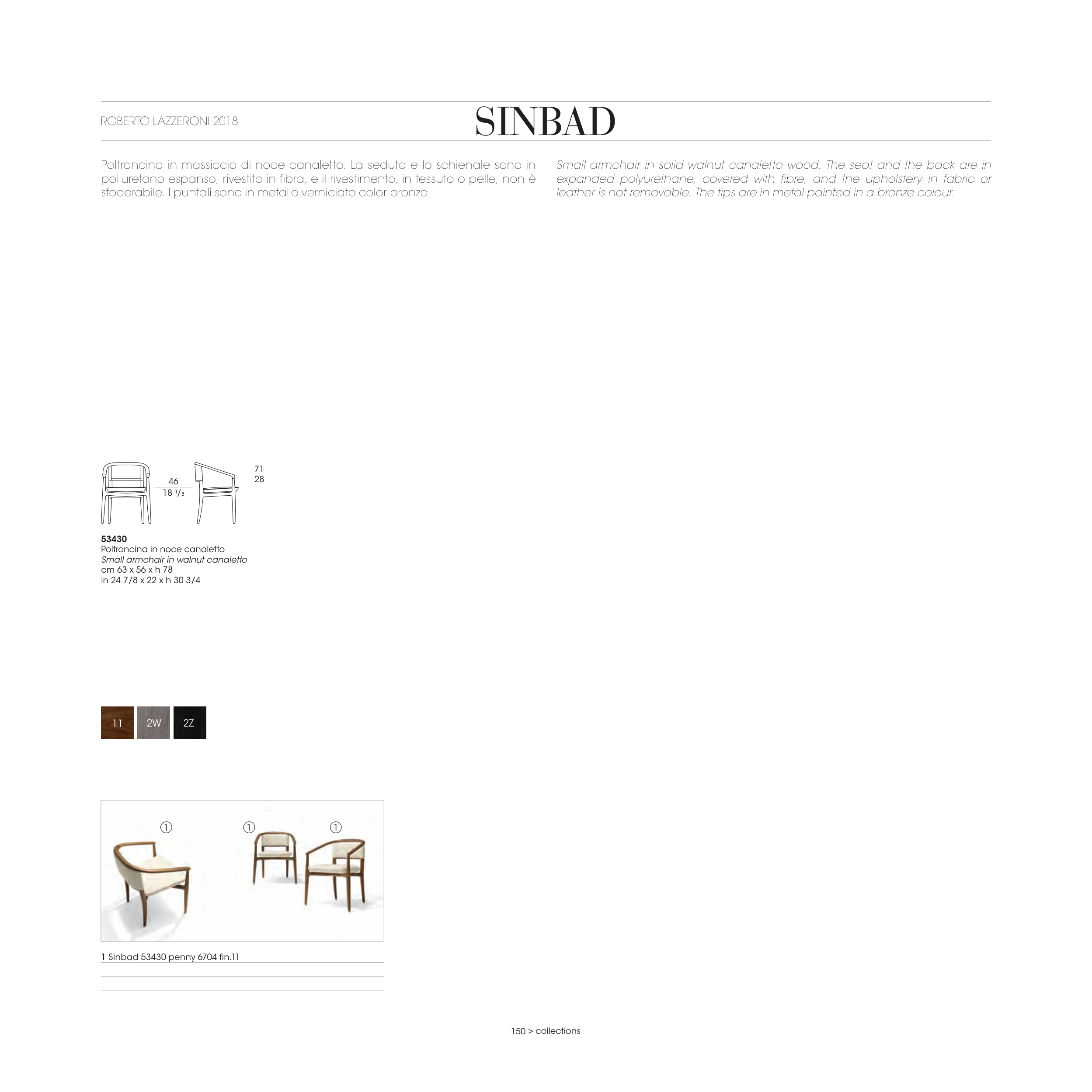 Small armchair in solid walnut canaletto wood. The seat and the back are in