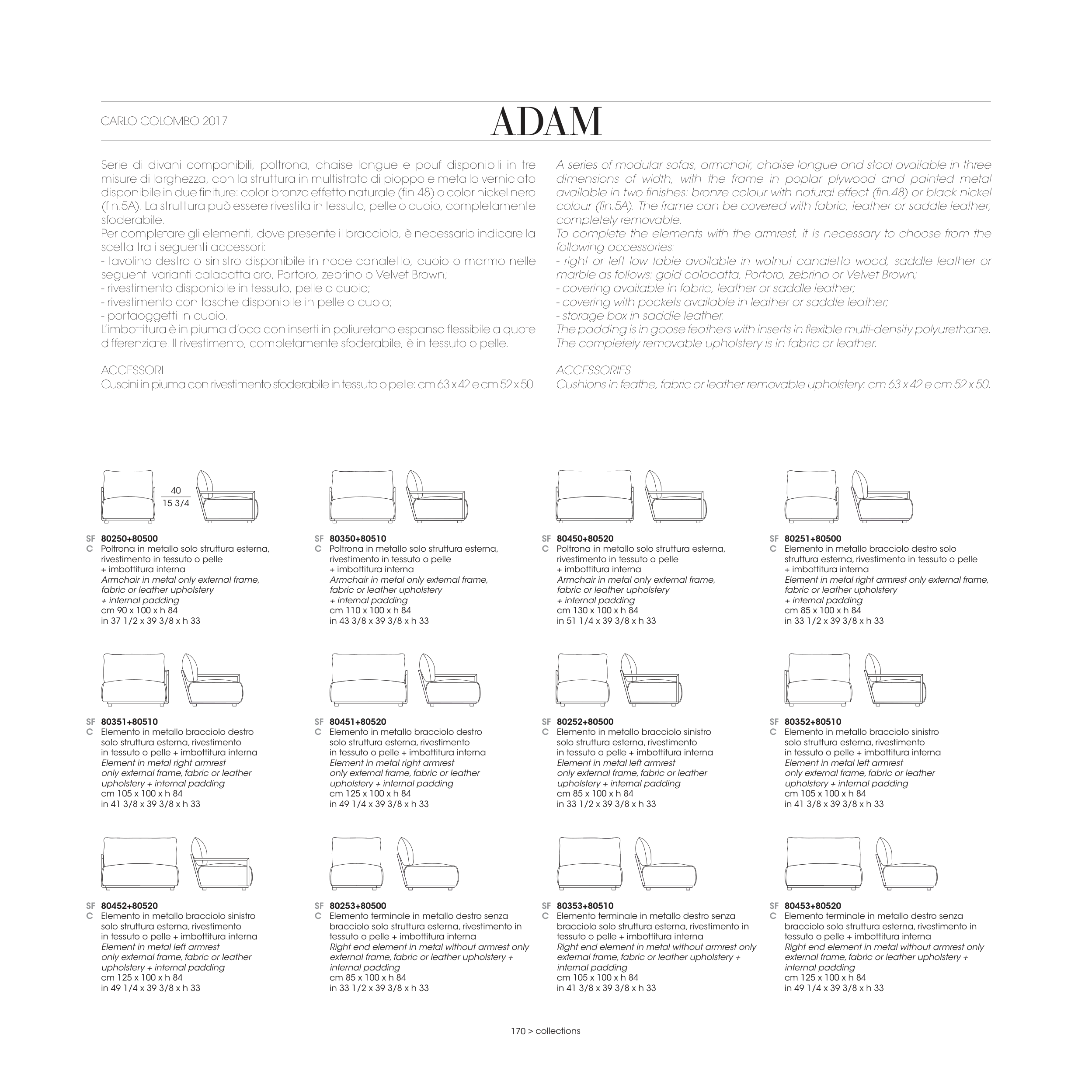 differenziate. Il rivestimento, completamente sfoderabile, è in tessuto o pelle.