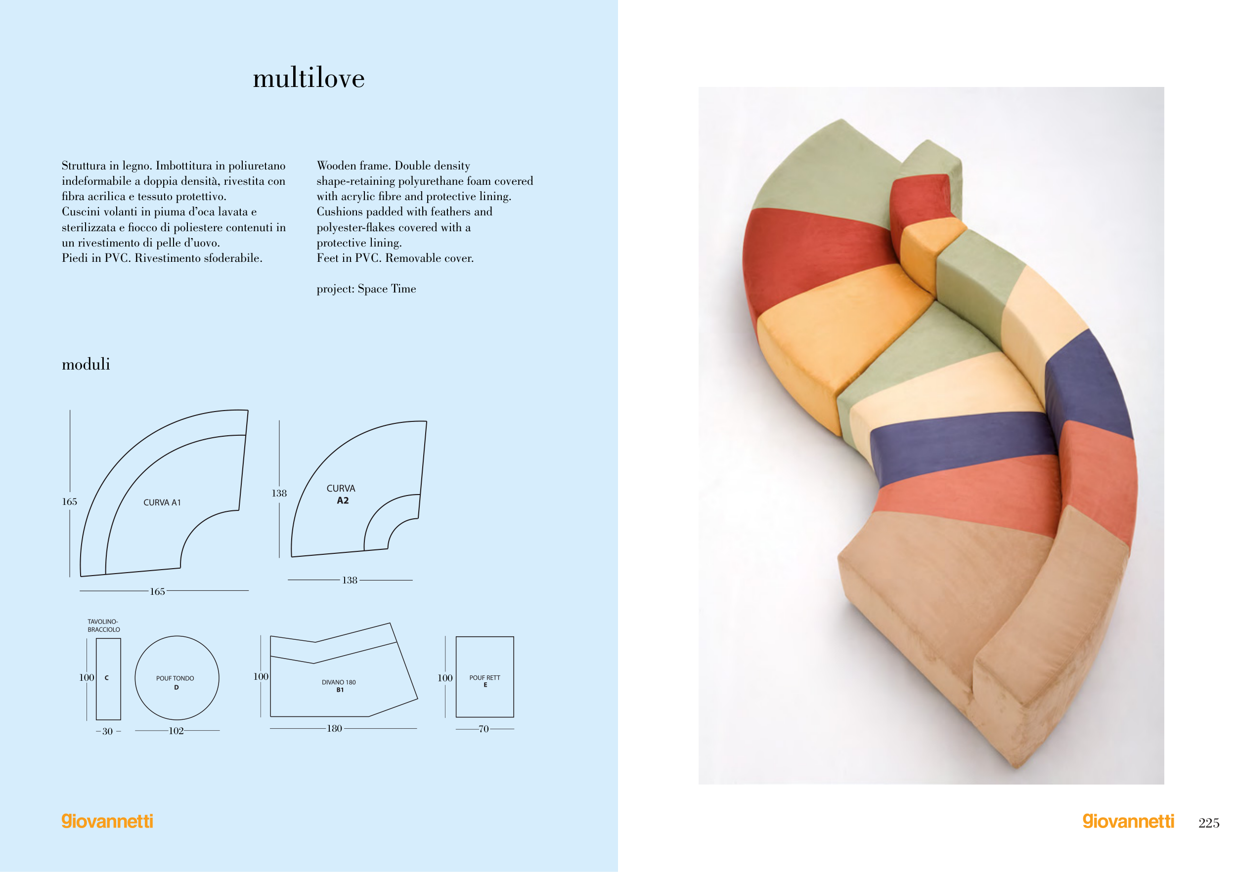 Struttura in legno. Imbottitura in poliuretano