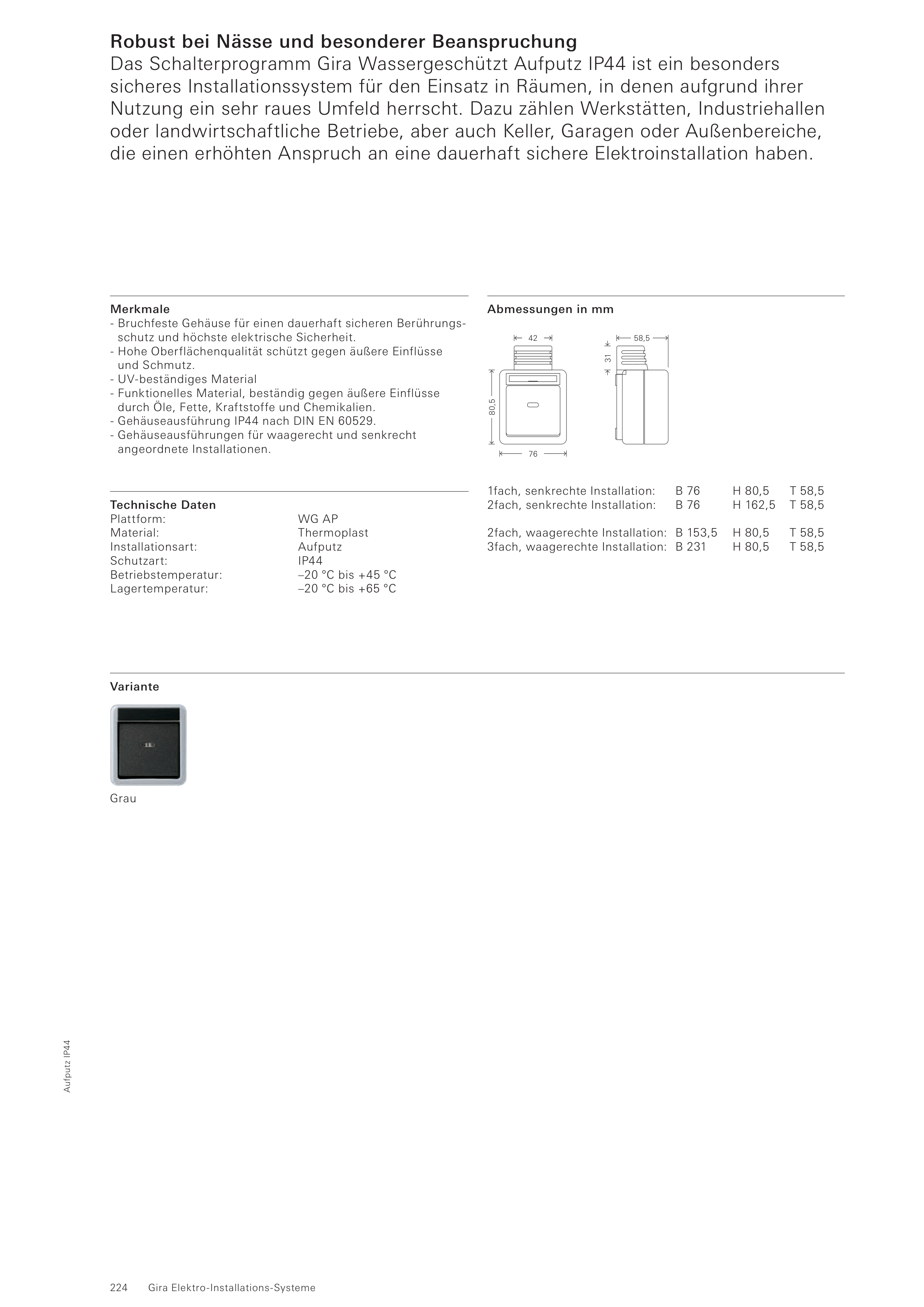 Das Schalterprogramm Gira Wassergeschützt Aufputz IP44 ist ein besonders