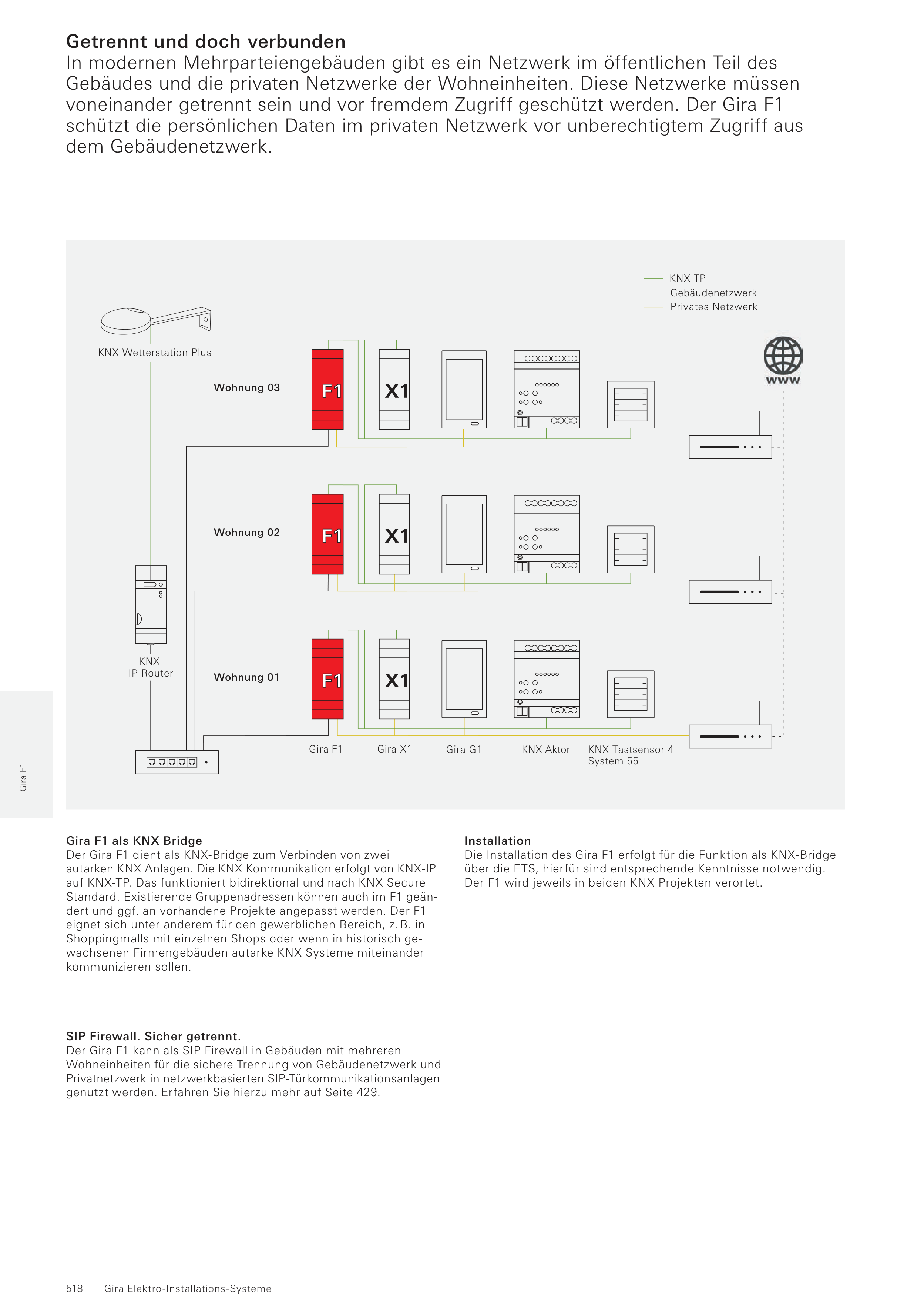 voneinander getrennt sein und vor fremdem Zugriff geschützt werden. Der Gira F1