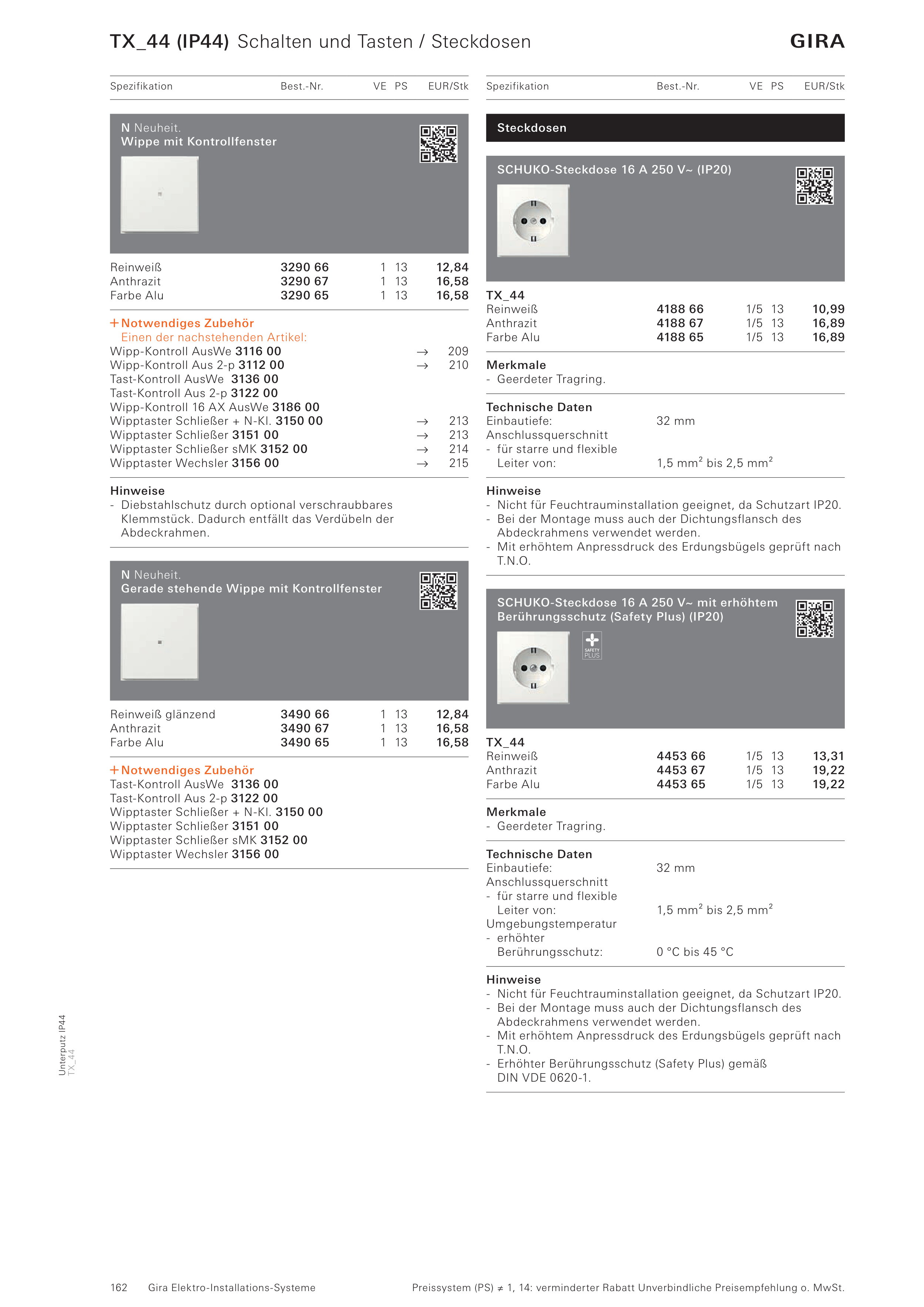 TX_44 (IP44) Schalten und Tasten / Steckdosen