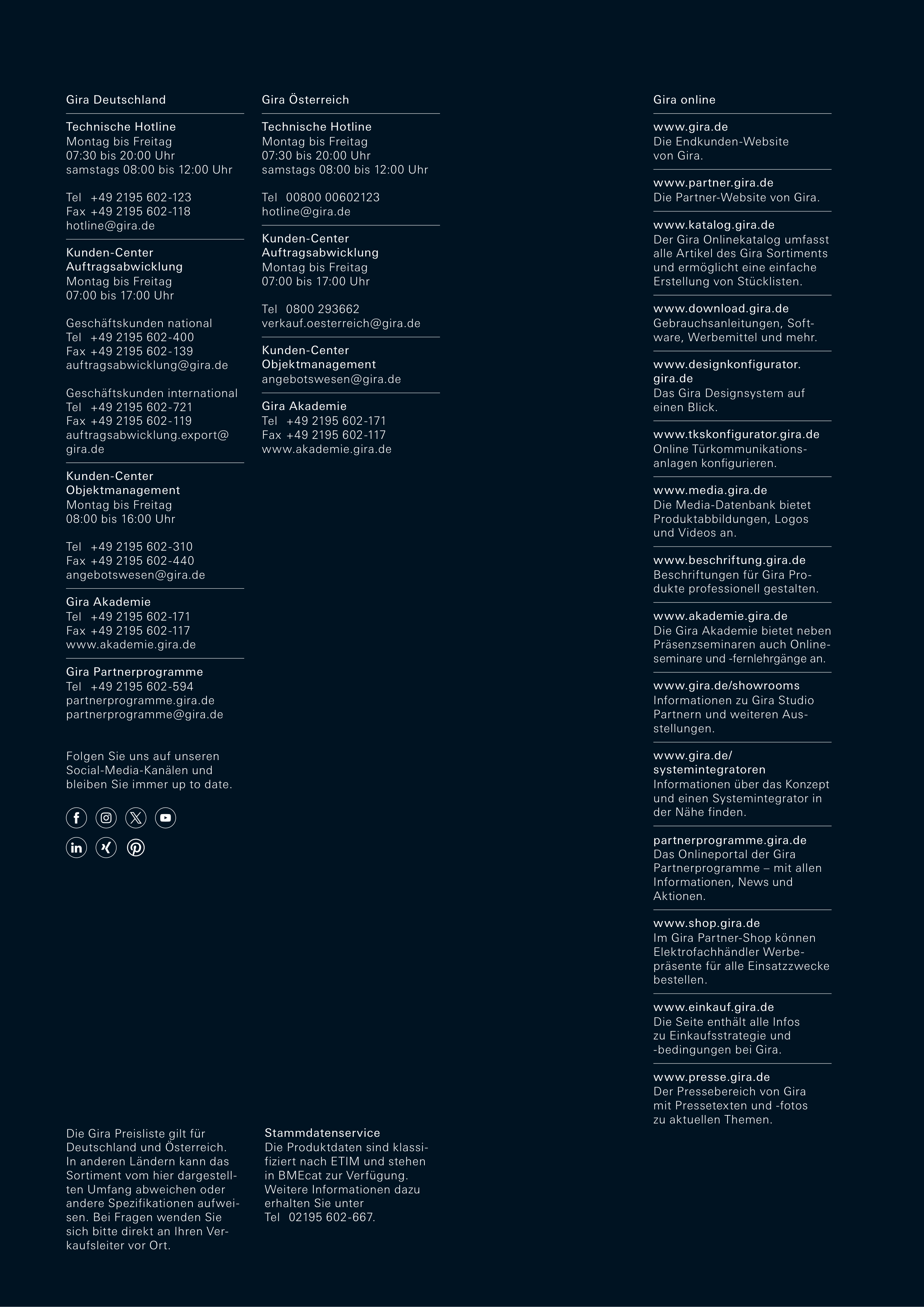 Die Gira Preisliste gilt für