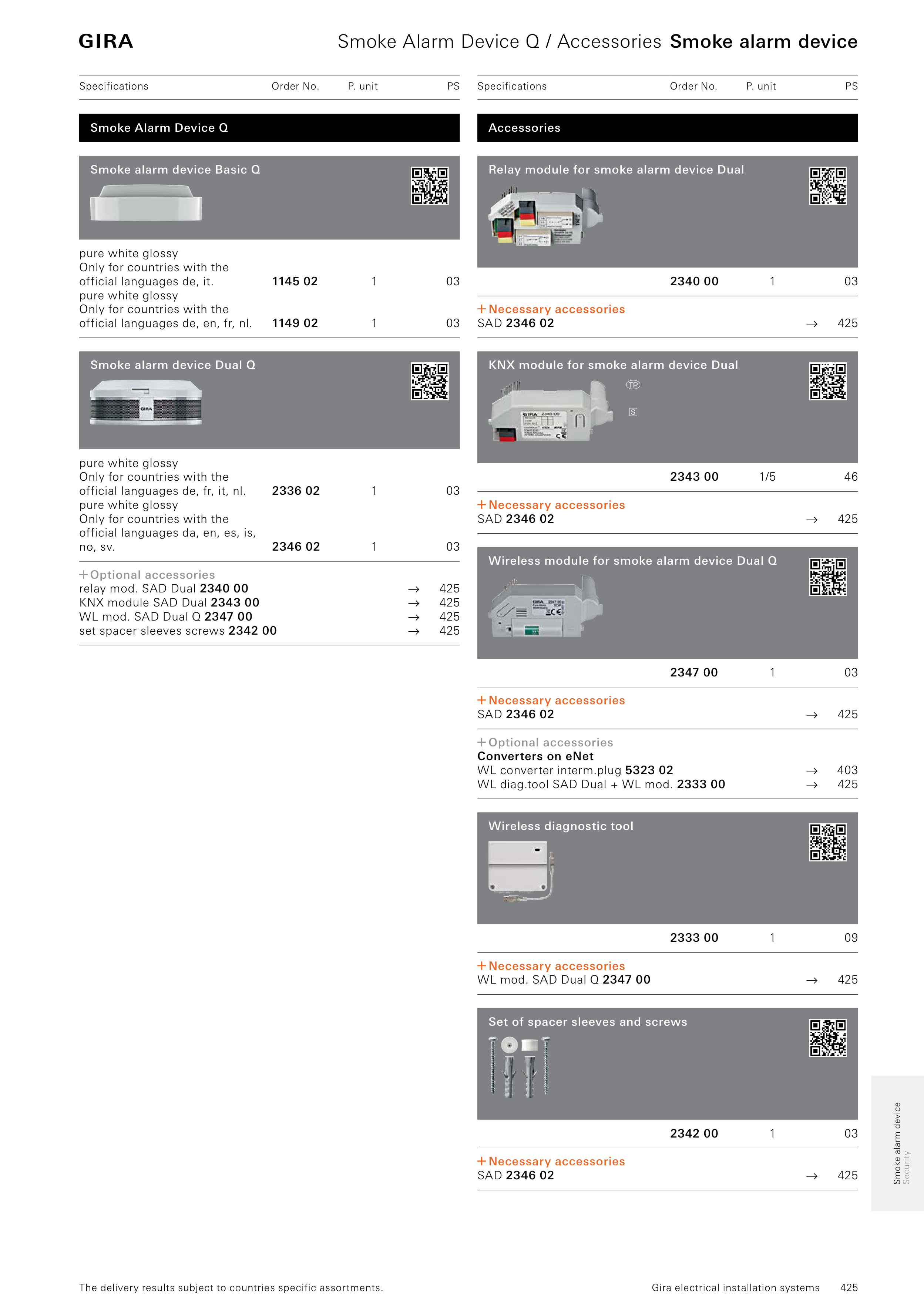 Gira Dual Q smoke alarm device: options, product range