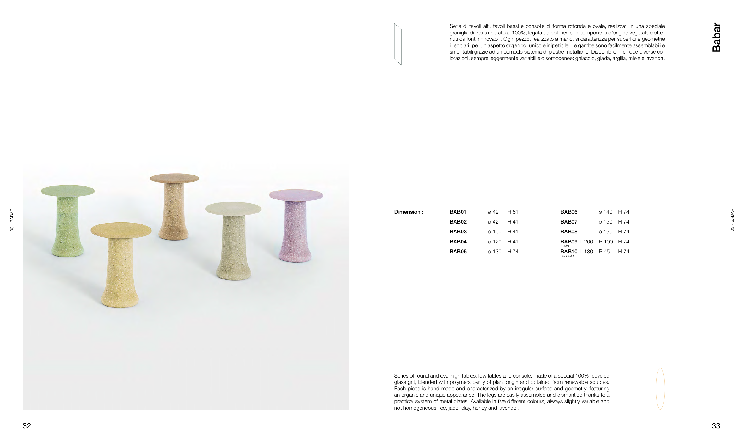 nuti da fonti rinnovabili. Ogni pezzo, realizzato a mano, si caratterizza per superfici e geometrie