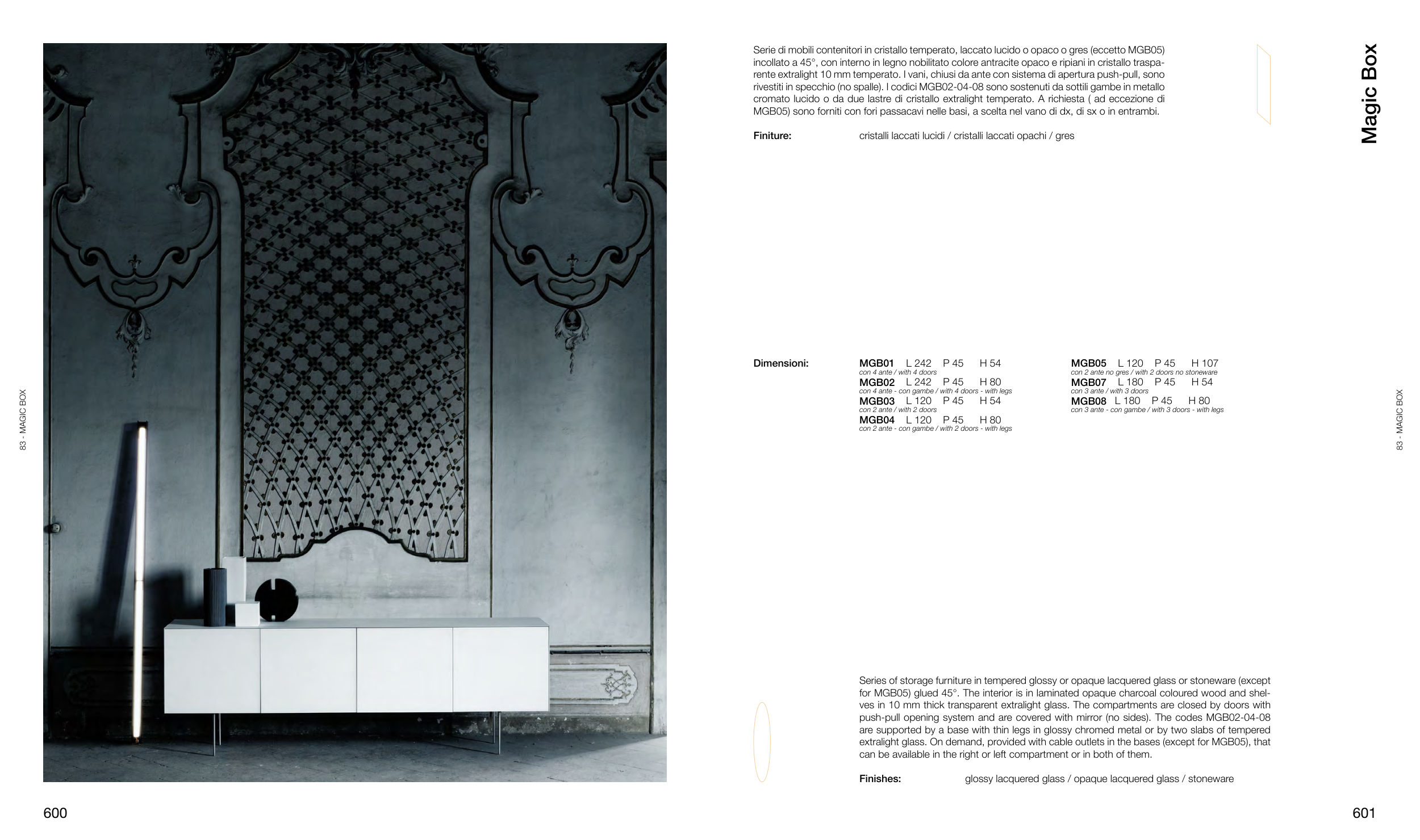 Serie di mobili contenitori in cristallo temperato, laccato lucido o opaco o gres (eccetto MGB05)