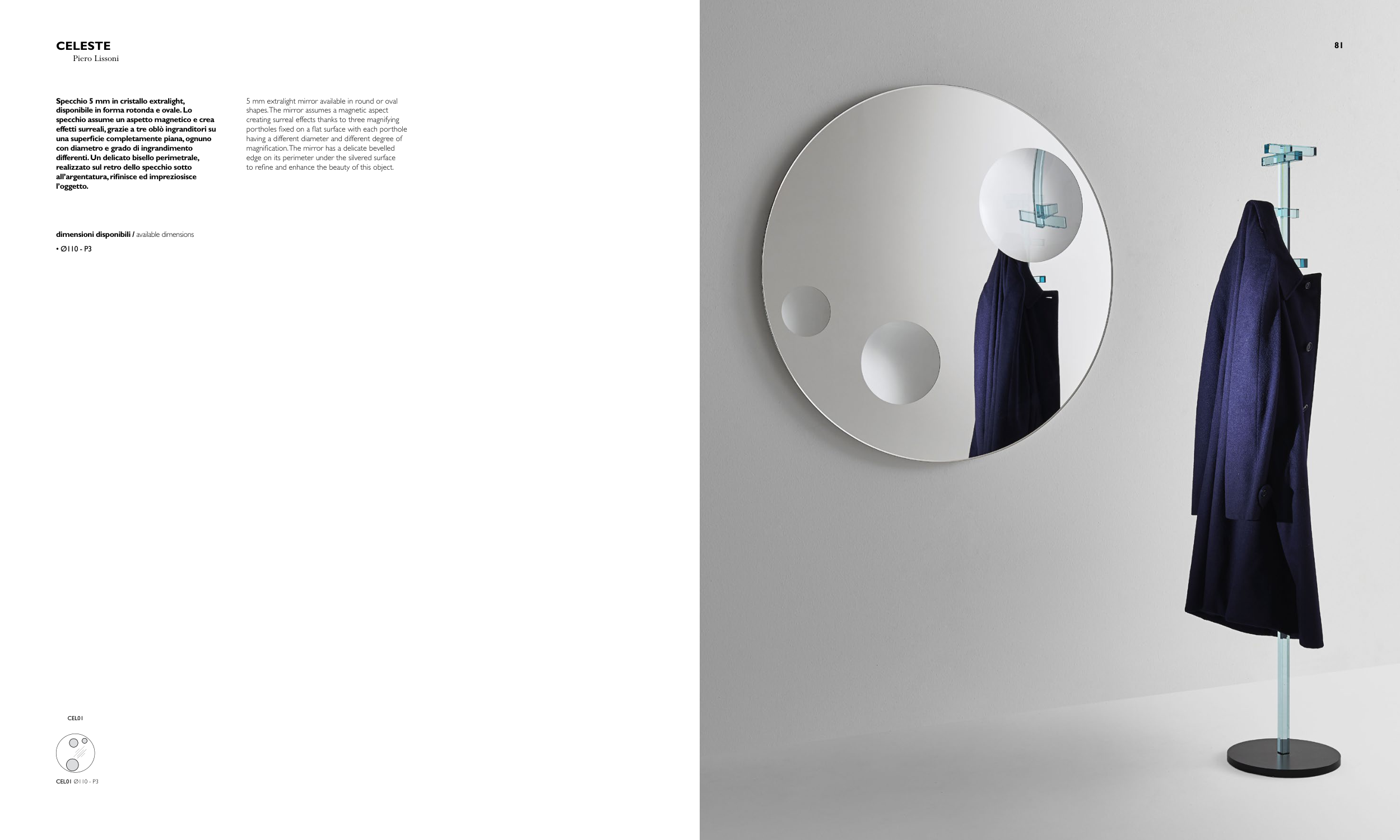 disponibile in forma rotonda e ovale. Lo