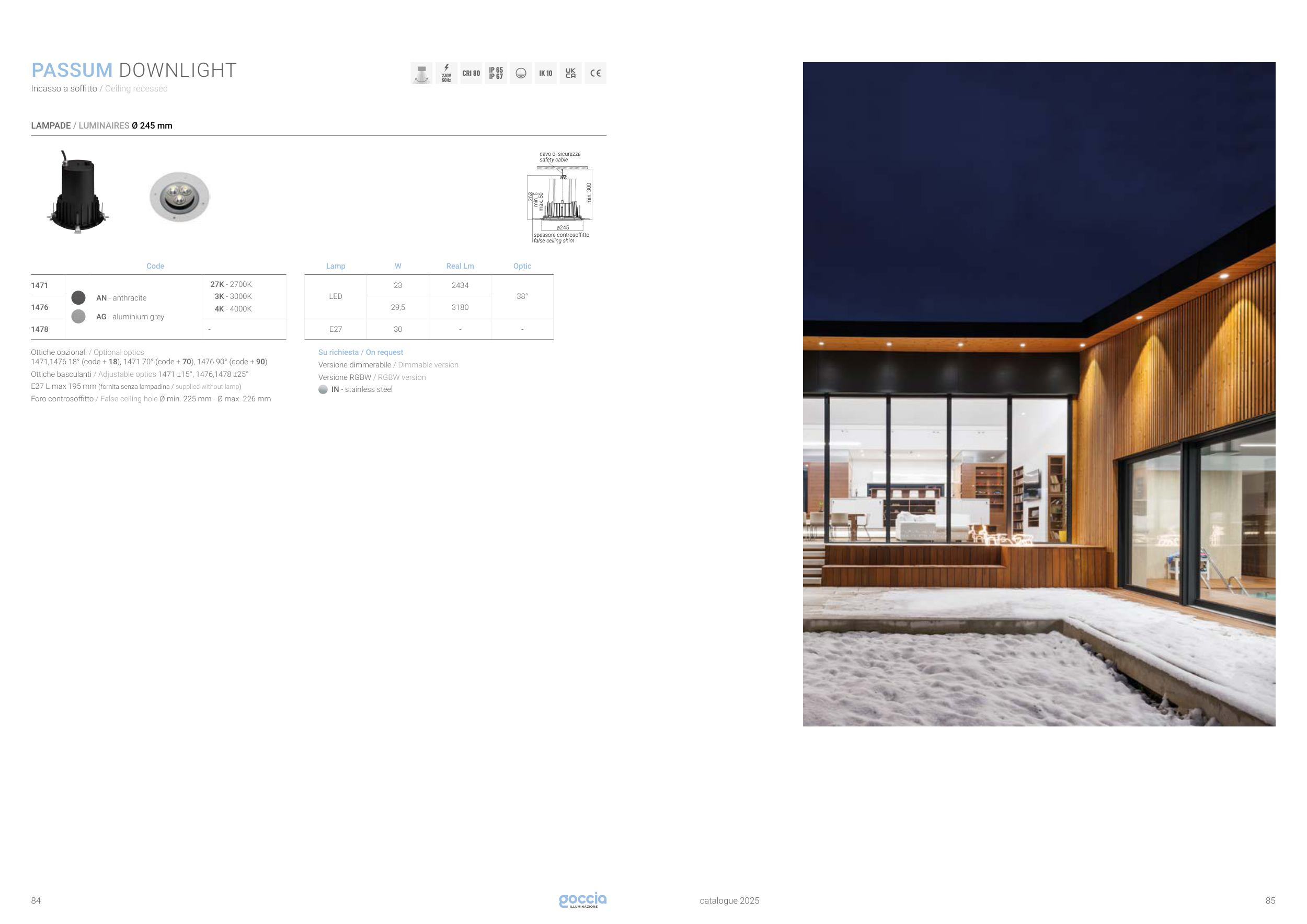 Foro controsoffitto / False ceiling hole Ø min. 225 mm - Ø max. 226 mm