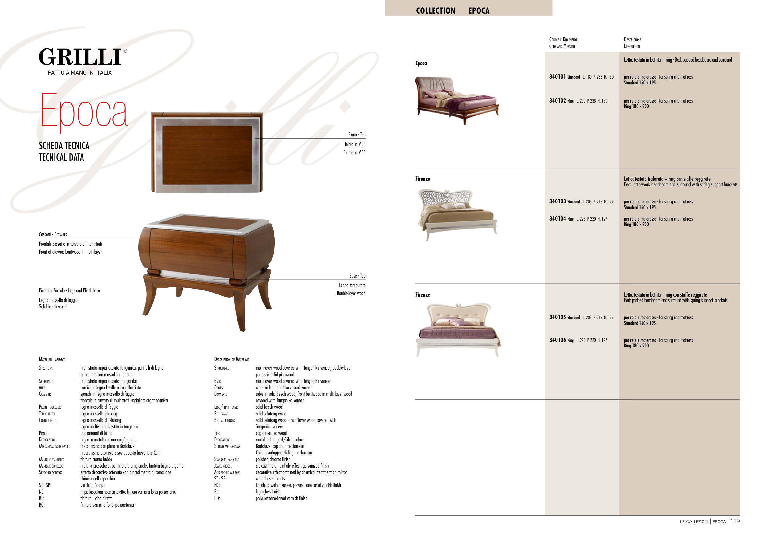 impiallacciatura noce canaletto, fi nitura vernici a fondi poliuretanici