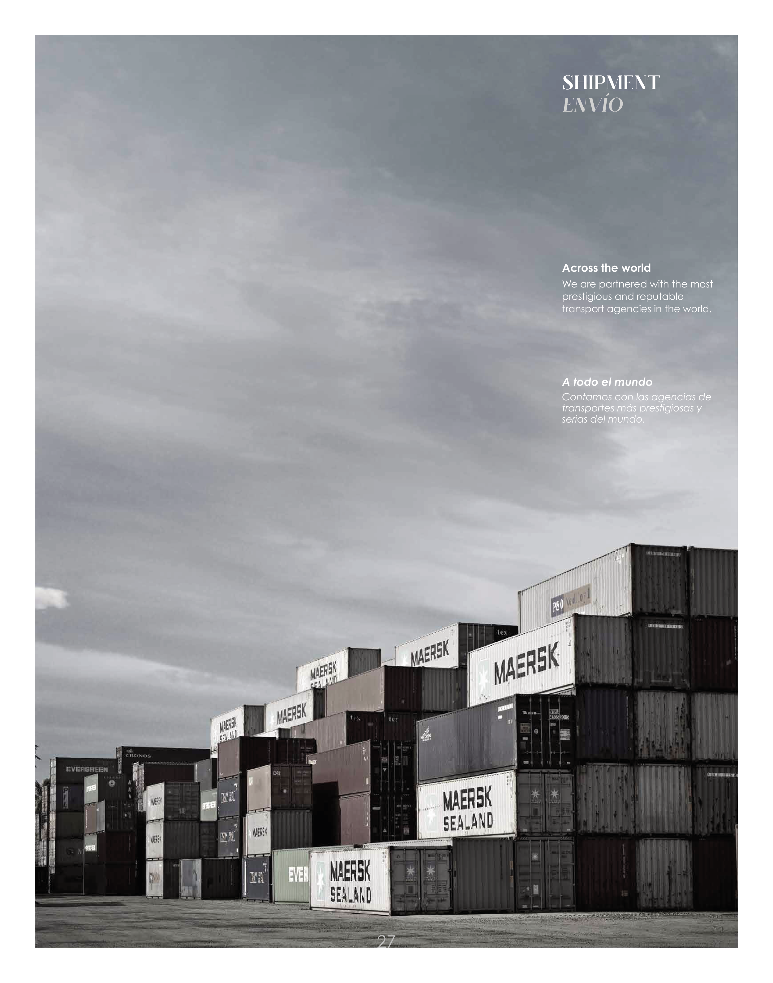 SHIPMENT ENVÍO A todo el mundo Contamos con las agencias de transportes más prestigiosas y serias del mundo. Across the world We are partnered with the most prestigious and reputable transport agencies in the world. 27