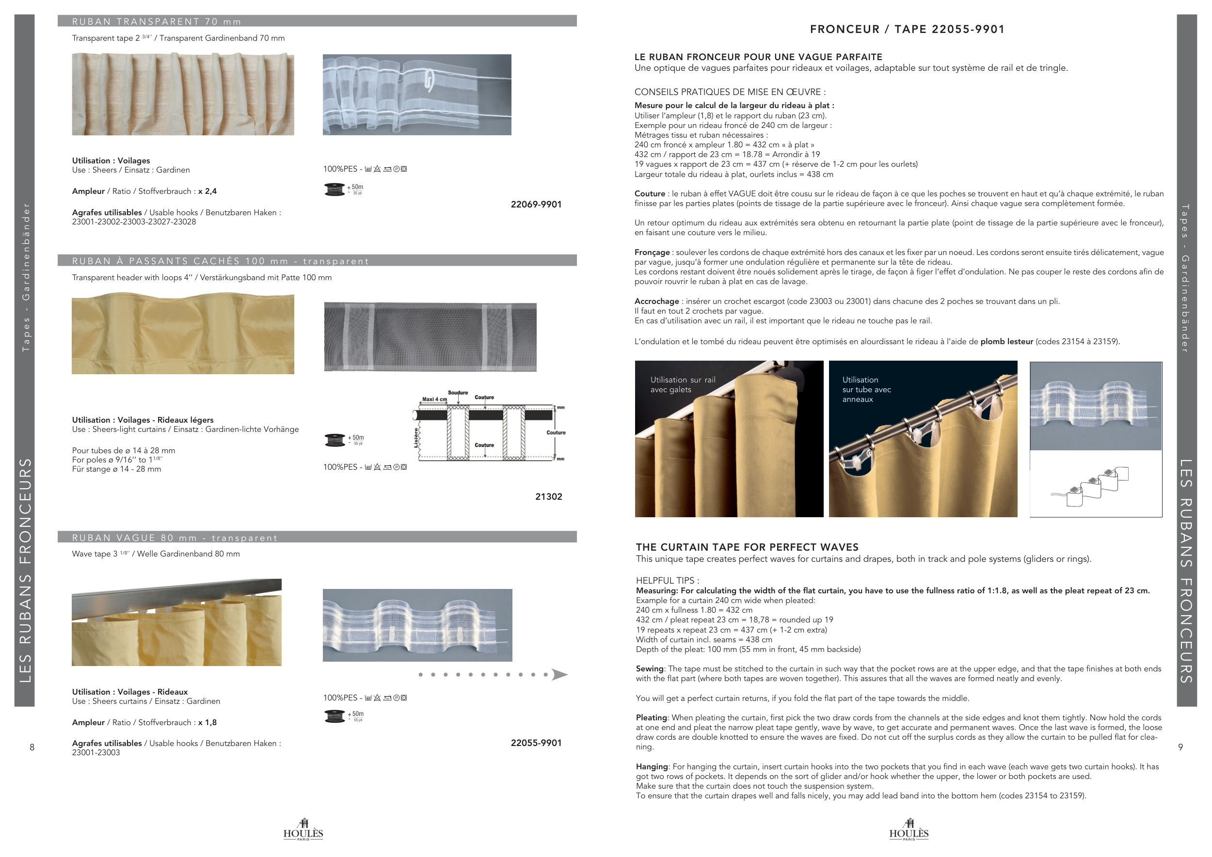 This unique tape creates perfect waves for curtains and drapes, both in track and pole systems (gliders or rings).