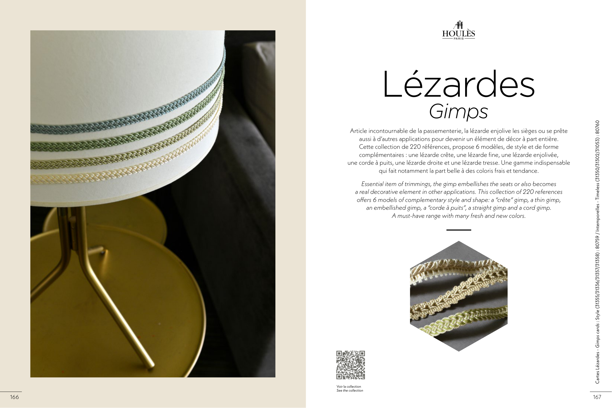 offers 6 models of complementary style and shape: a “crête” gimp, a thin gimp,