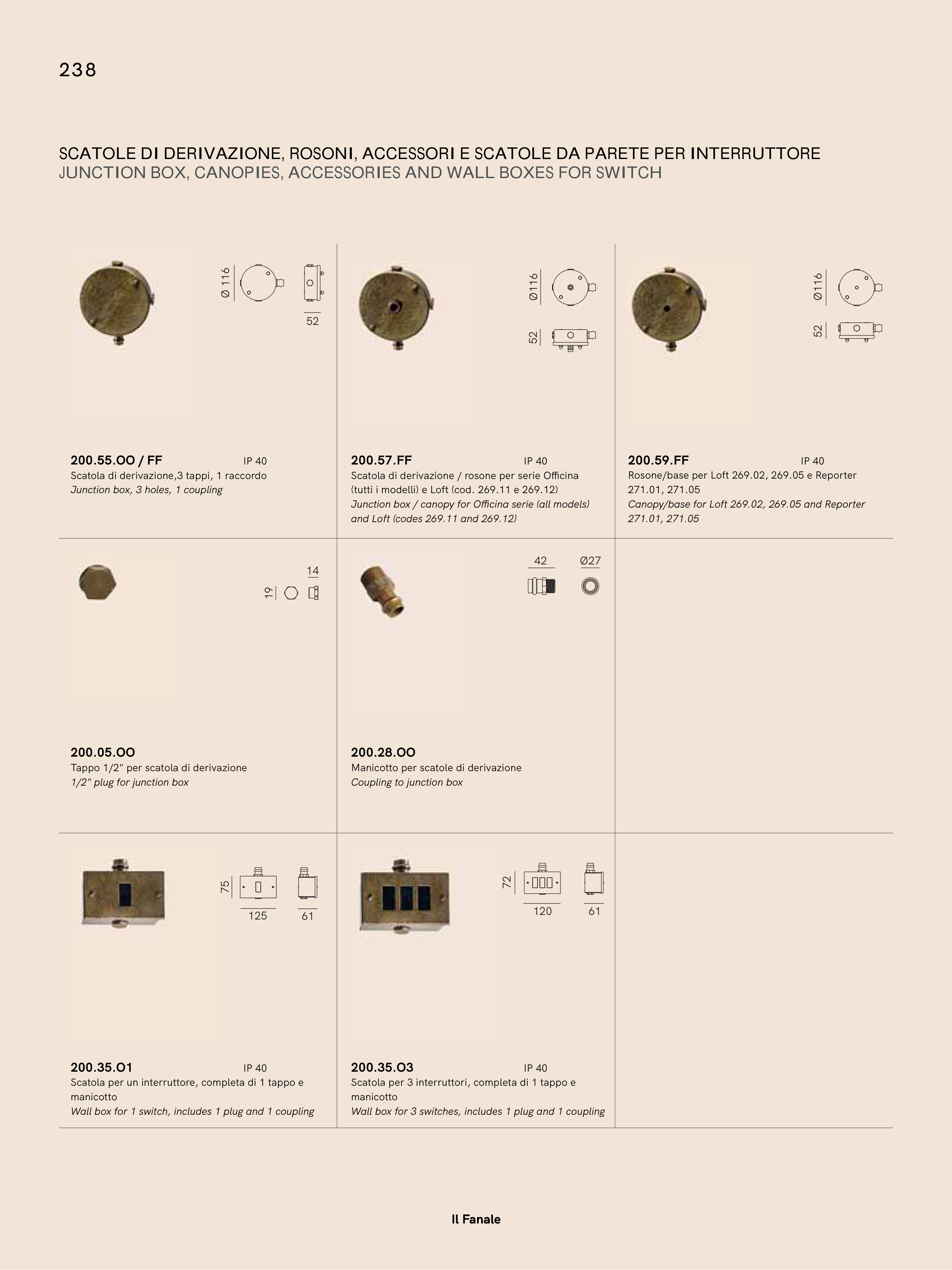 JUNCTION BOX, CANOPIES, ACCESSORIES AND WALL BOXES FOR SWITCH