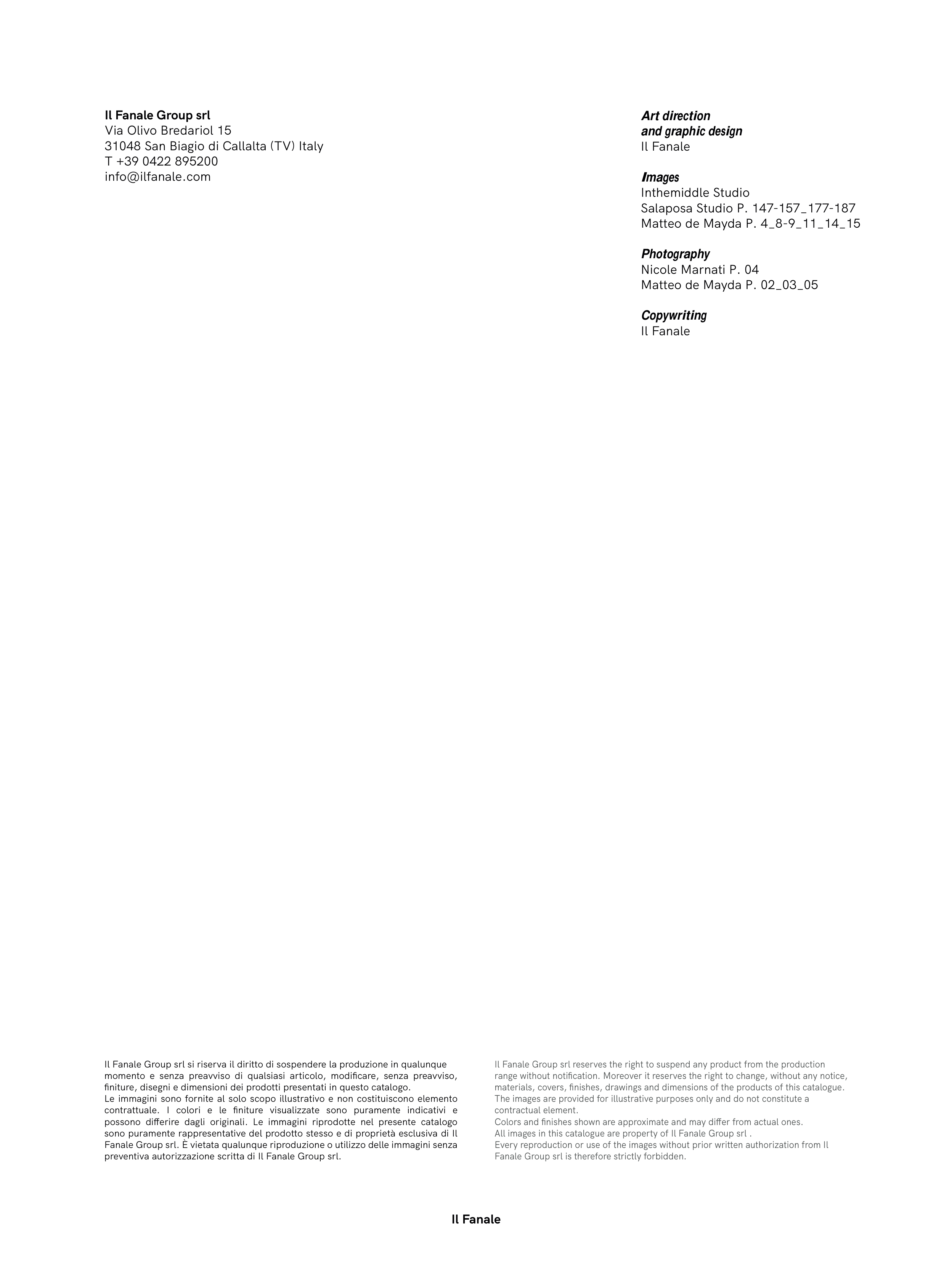 All images in this catalogue are property of Il Fanale Group srl .