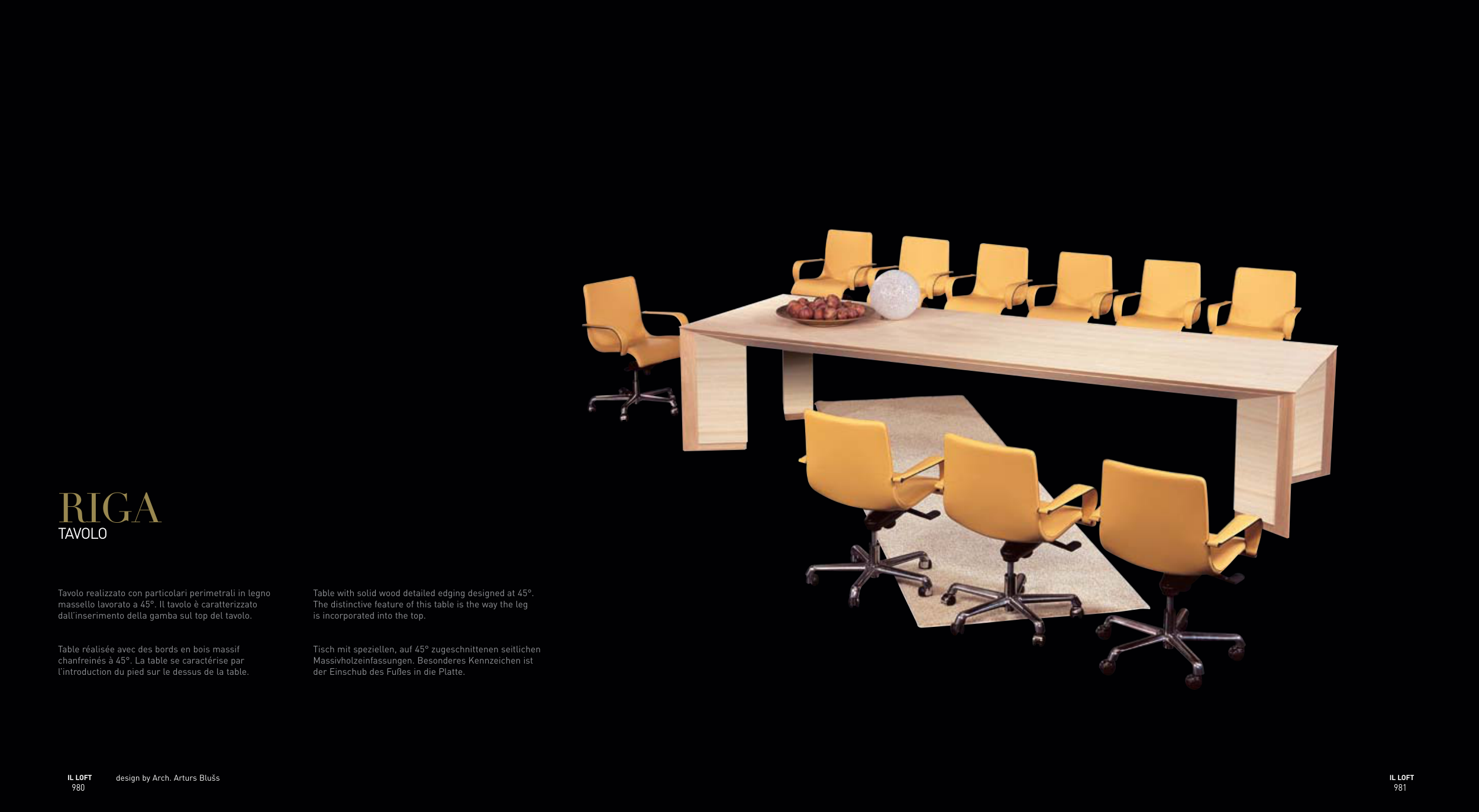 massello lavorato a 45°. Il tavolo è caratterizzato
