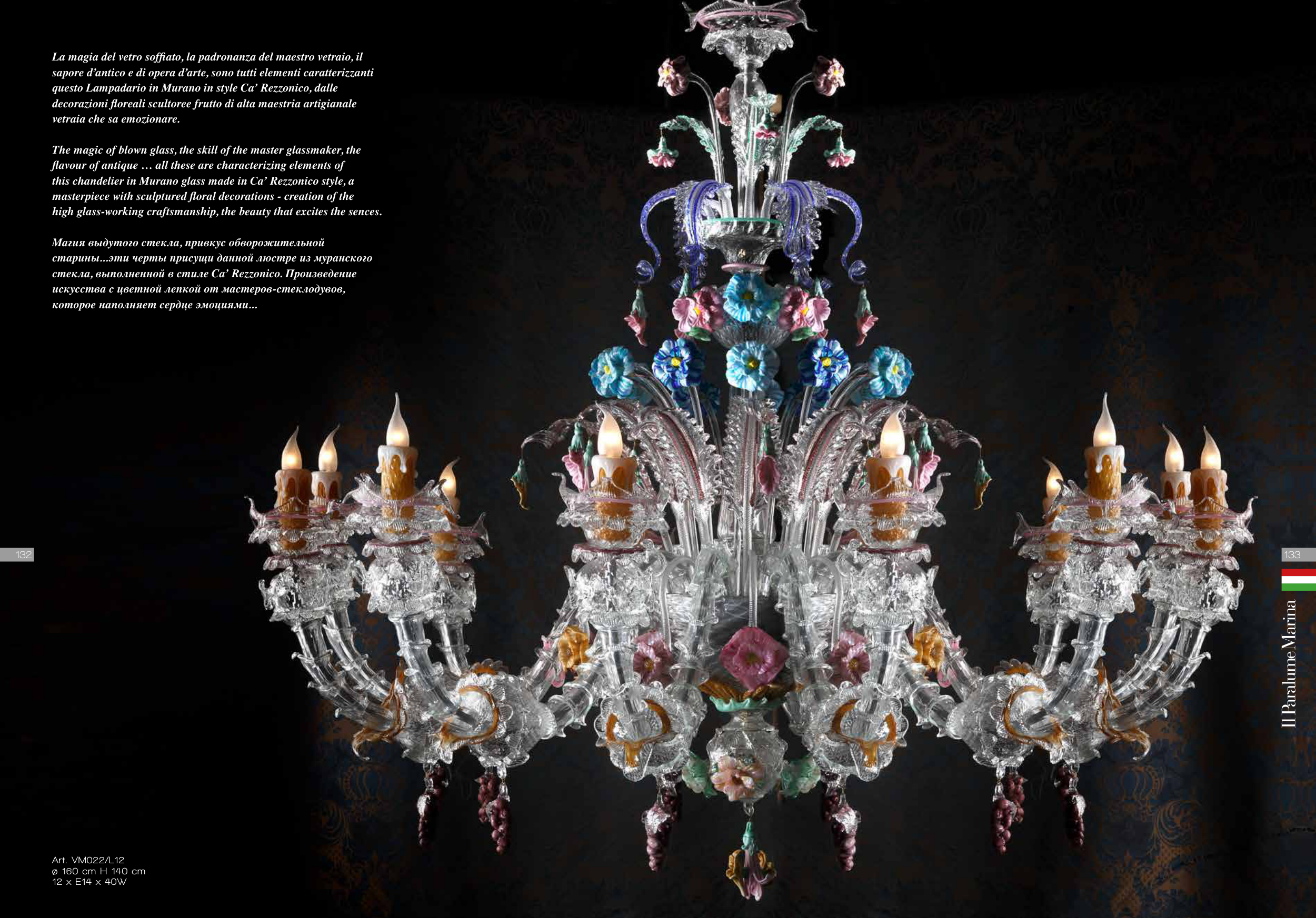 this chandelier in Murano glass made in Ca’ Rezzonico style, a