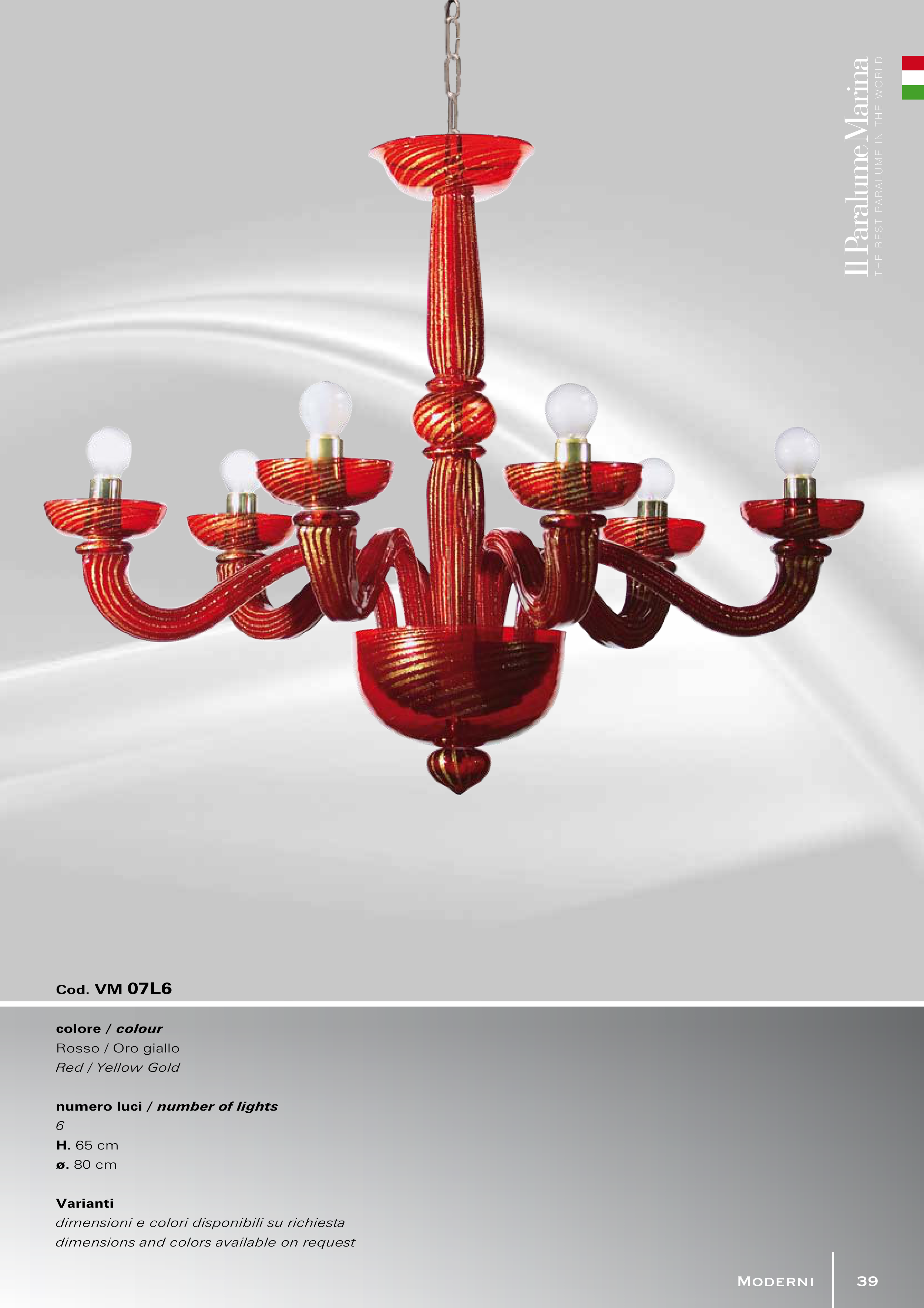 numero luci / number of lights 6 H. 65 cm ø. 80 cm Varianti dimensioni e colori disponibili su richiesta dimensions and colors available on request Moderni 39