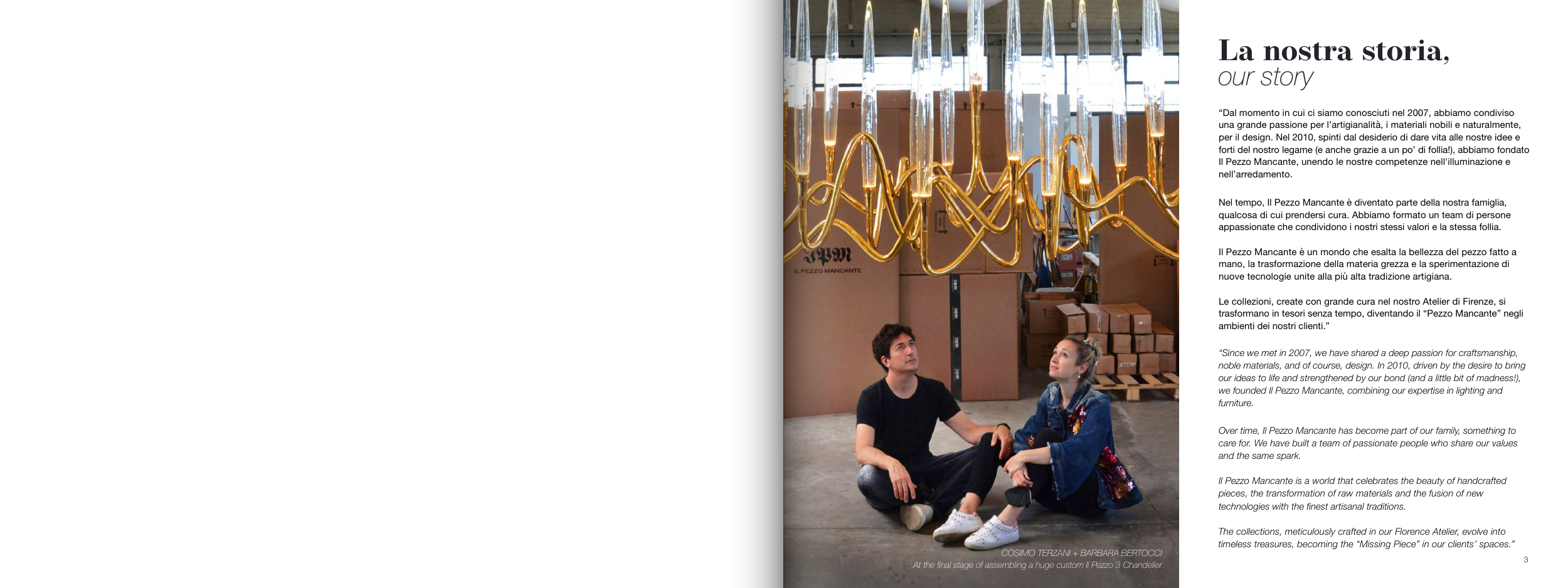 we founded Il Pezzo Mancante, combining our expertise in lighting and