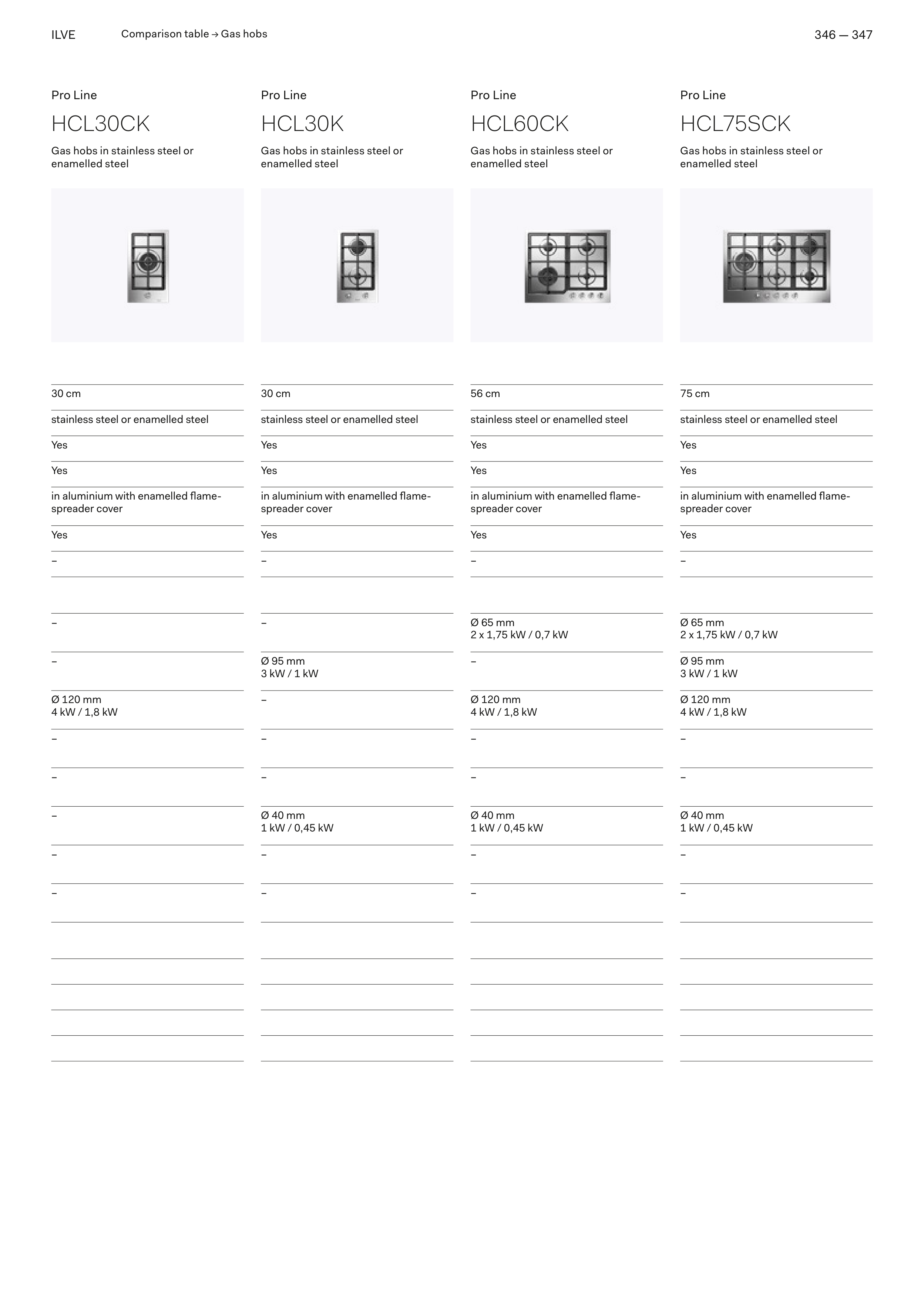 Comparison table → Gas hobs