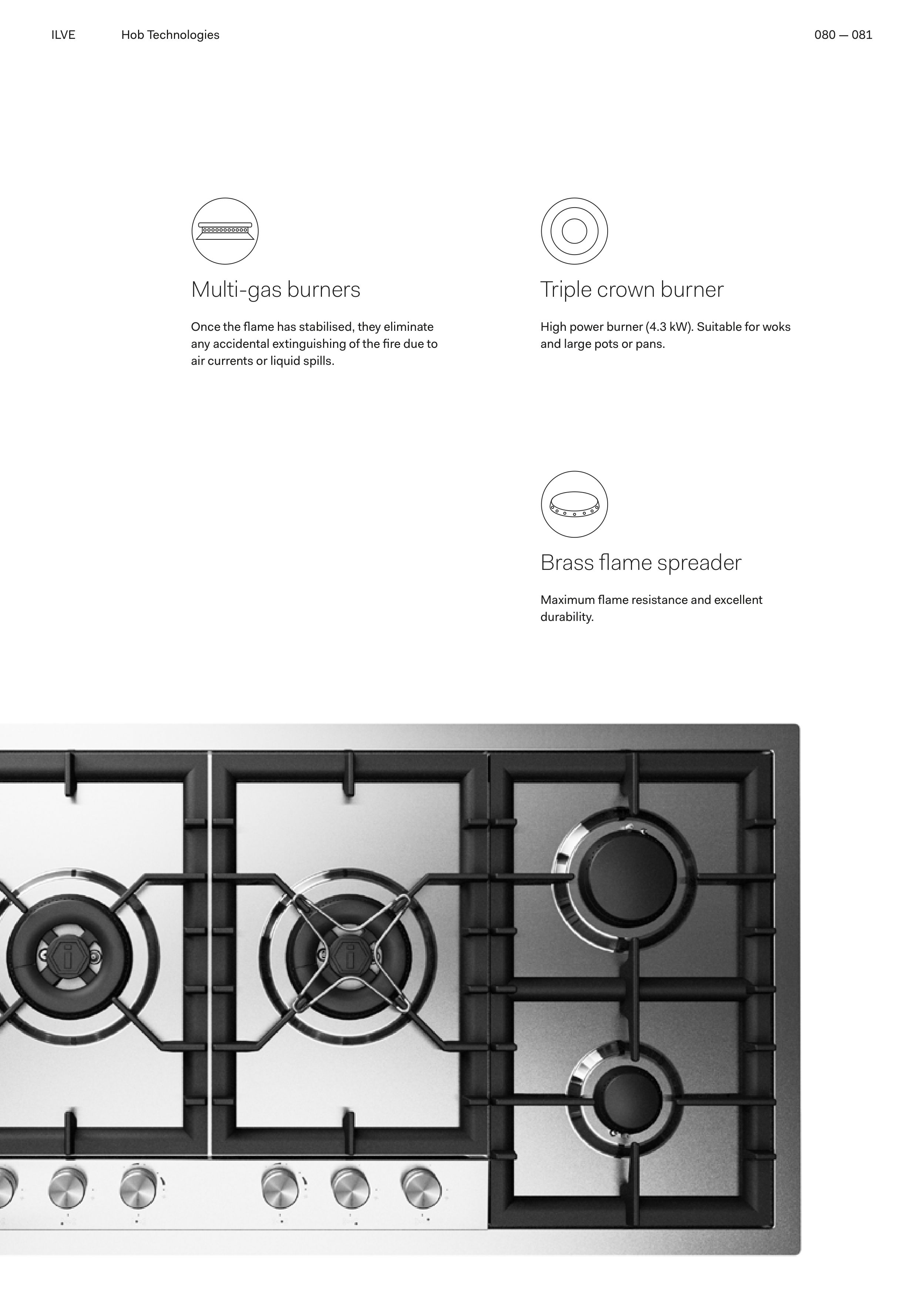High power burner (4.3 kW). Suitable for woks