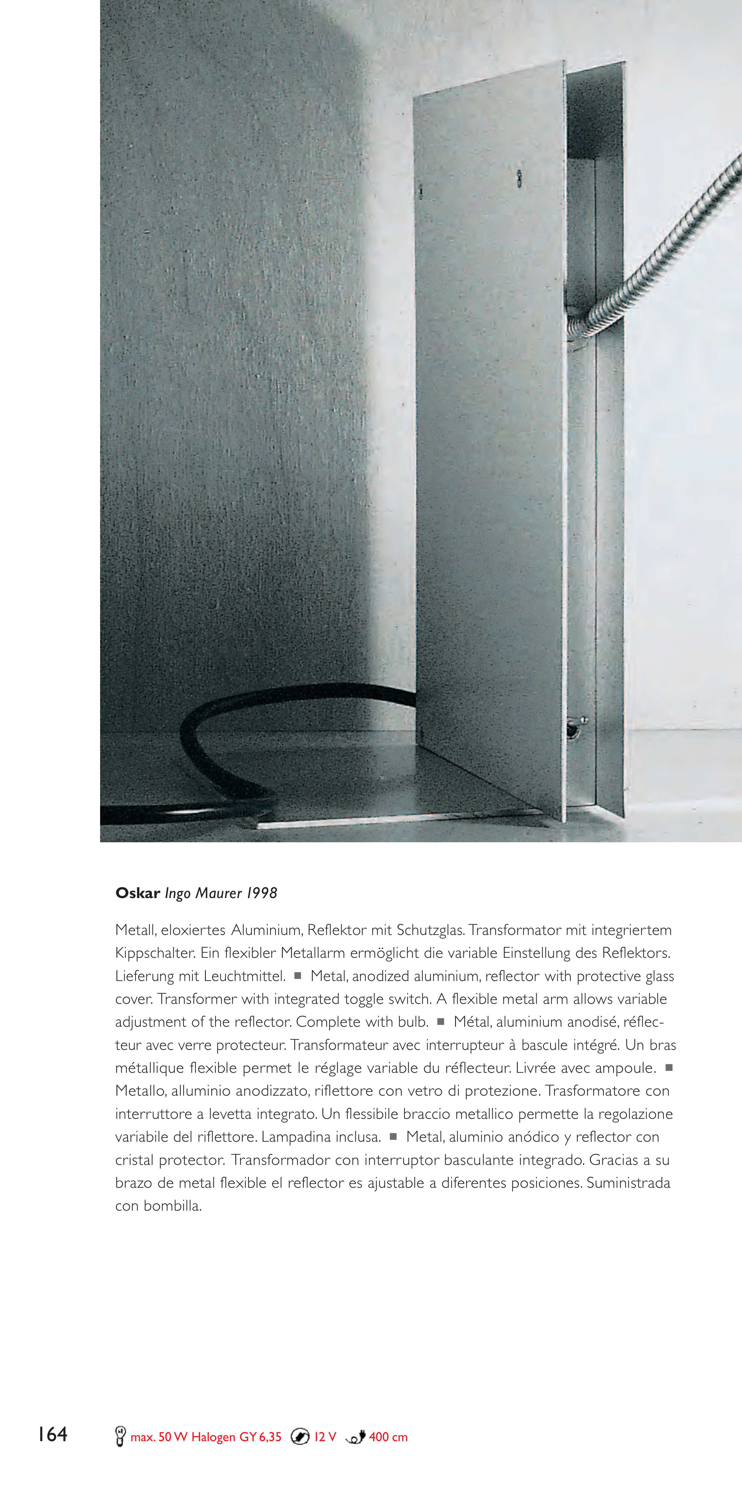 Metall, eloxiertes Aluminium, Reflektor mit Schutzglas. Transformator mit integriertem