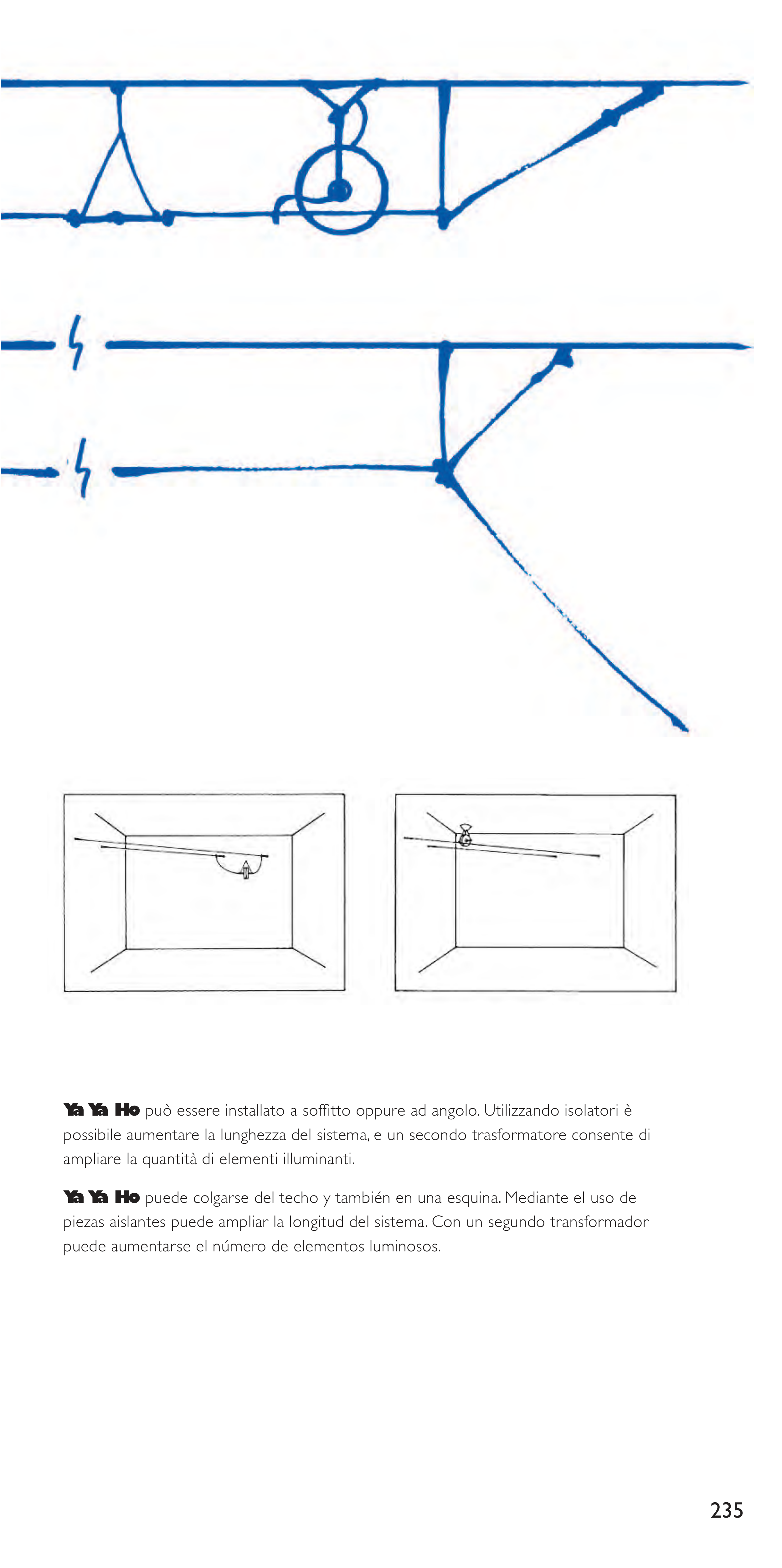 Ya Ya Ho può essere installato a soffitto oppure ad angolo. Utilizzando isolatori è